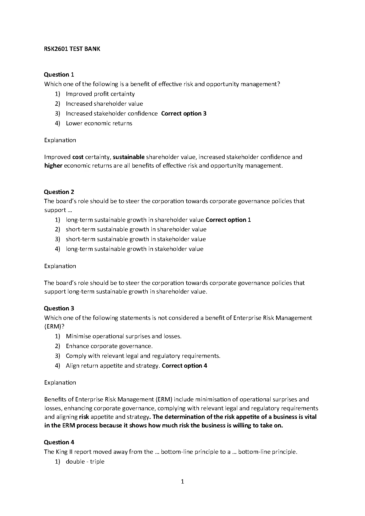 TEST BANK FOR RSK2601 QUESTIONS AND ANSWERS 2023/2024