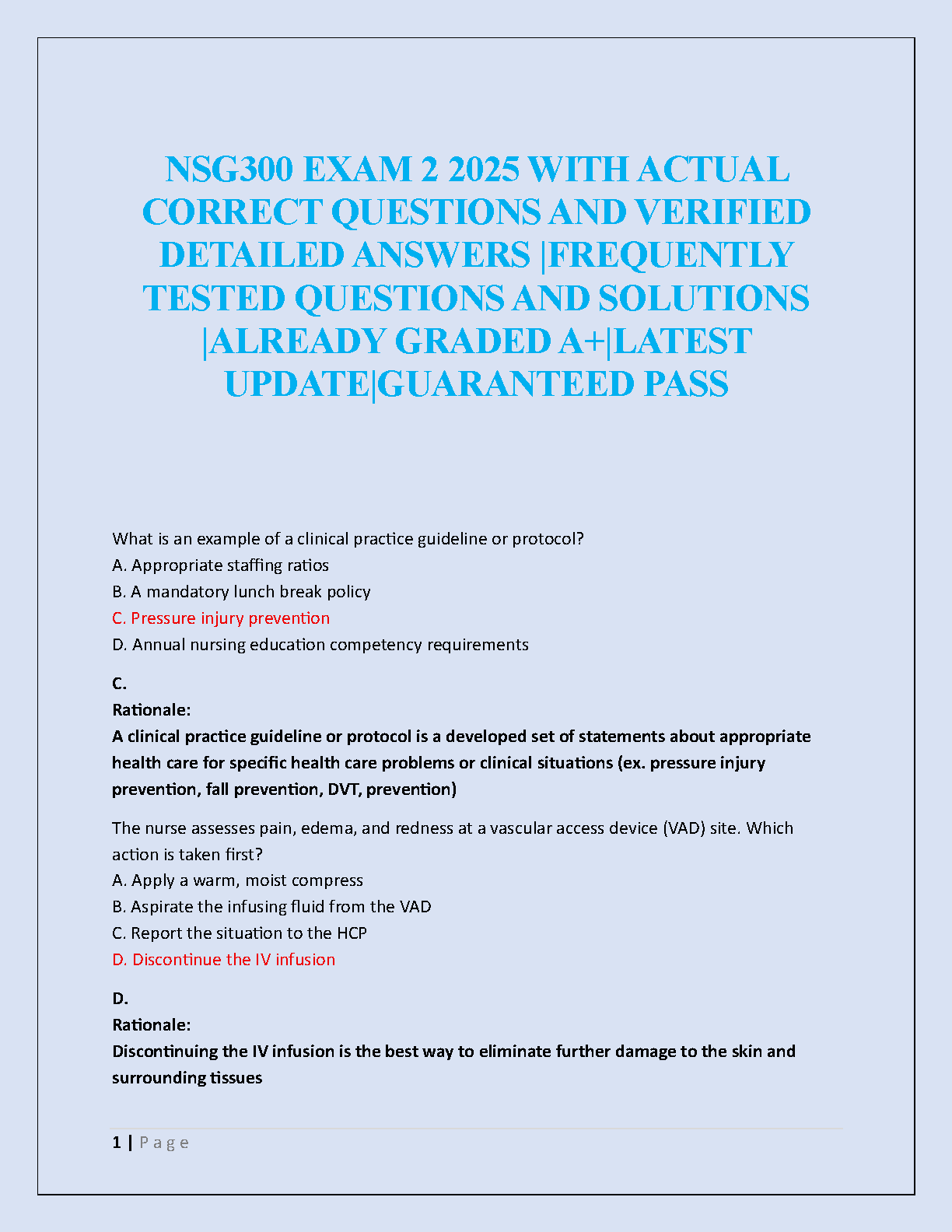 NSG300 Exam 2 Test Bank: Latest 2025 A+ Graded Study Guide with Verified Questions and Detailed Rationales