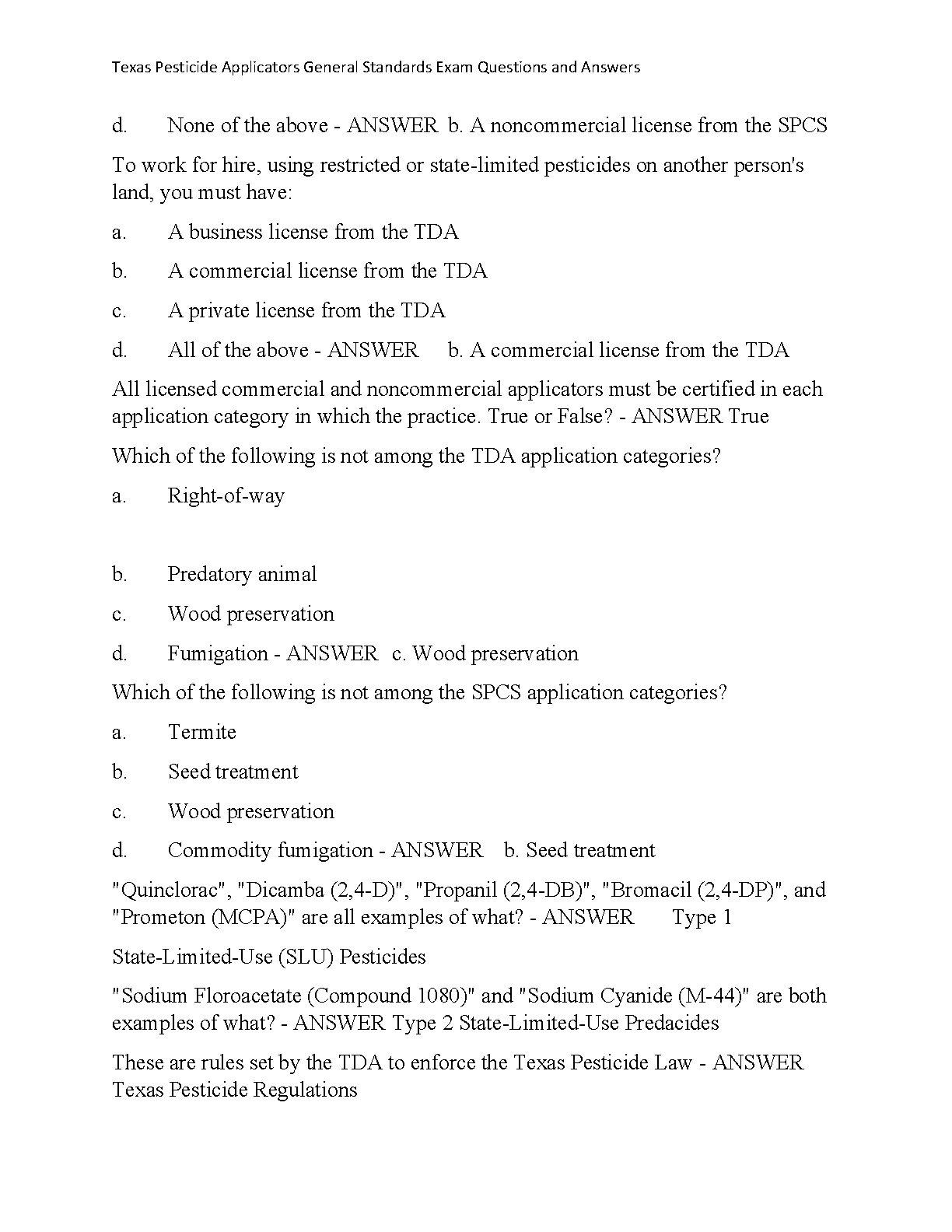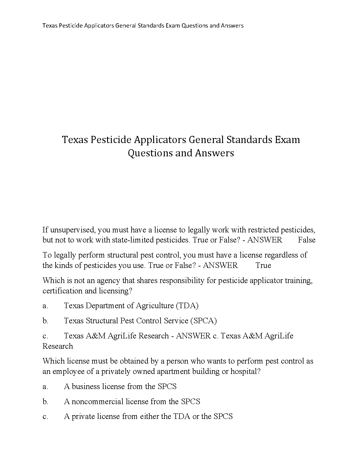 Master the Texas Pesticide Applicators General Standards Exam with our comprehensive test bank, featuring a complete set of questions and verified answers. This essential study guide is expertly crafted based on the official Texas A&M AgriLife Extension training manual, covering all key topics required for your certification. Prepare effectively, boost your confidence, and pass your TDA General Standards exam on the first try. This resource is perfect for anyone seeking a pesticide applicator license in Texas.