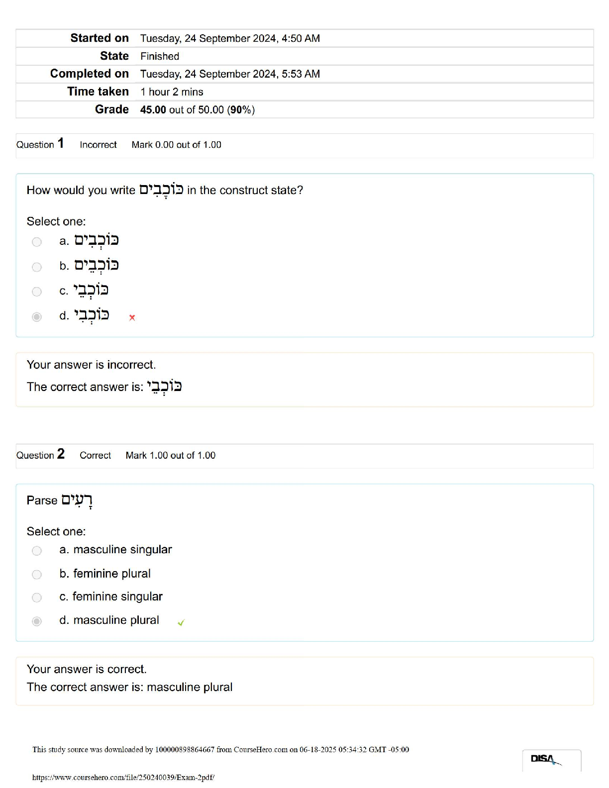 Unlock exam success with our comprehensive Test Bank for Hebrew Grammar Exam 3. This updated 2025/2026 resource provides a complete set of questions and 100% verified answers, covering key topics like the construct state (smichut) and parsing nouns for gender and number. Designed to help you master complex grammatical concepts, this study guide is your ultimate tool to prepare effectively, boost your confidence, and pass your exam on the first attempt. Avoid resits and achieve a top grade with these expertly curated practice questions and solutions.