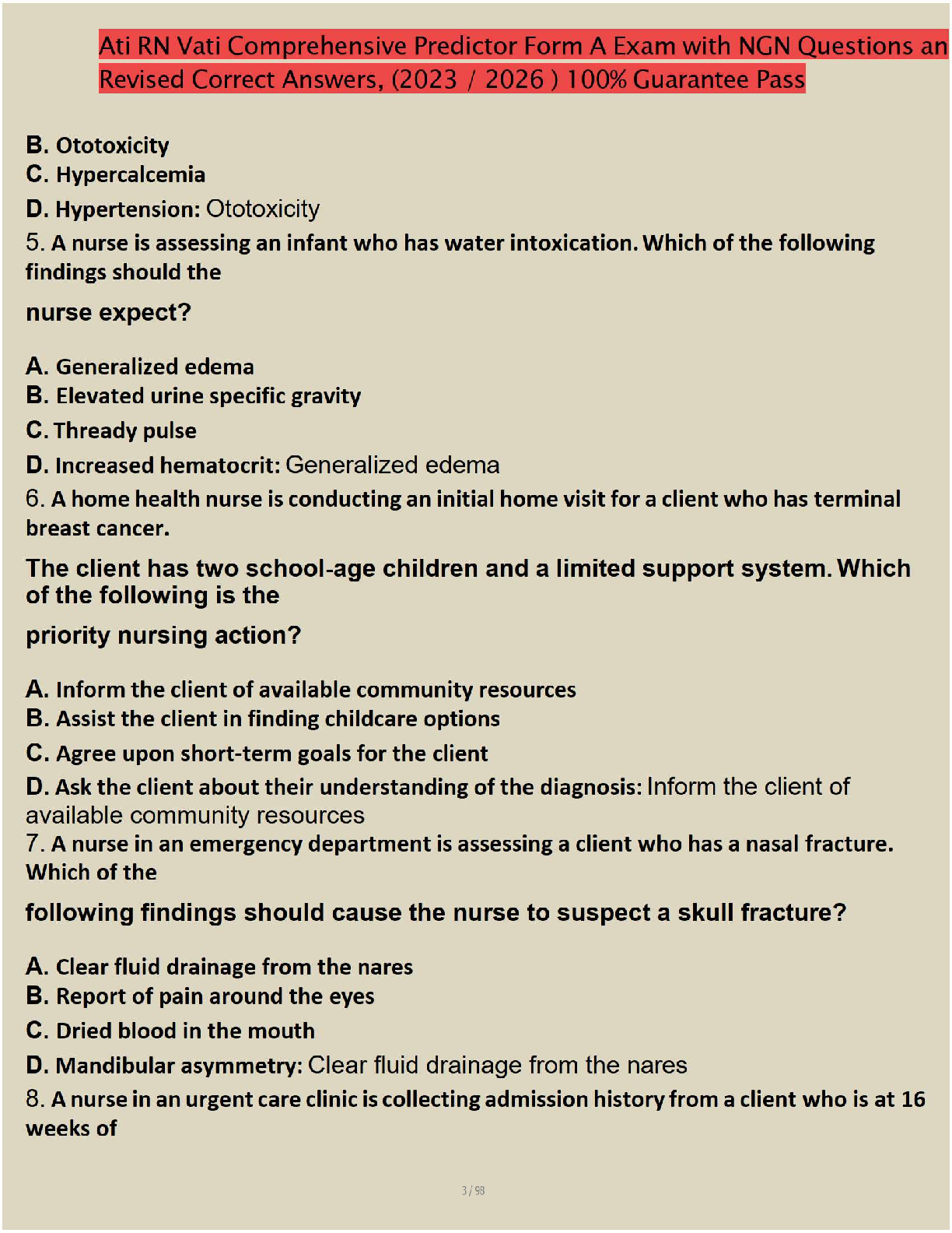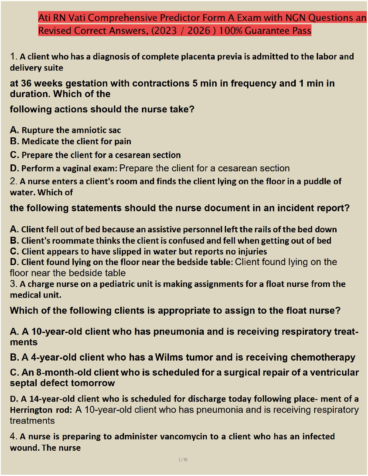ATI RN Comprehensive Predictor Form A 2023-2026 Test Bank | VATI Exam with NGN Questions and Expert-Verified Answers by ATI Nursing Education