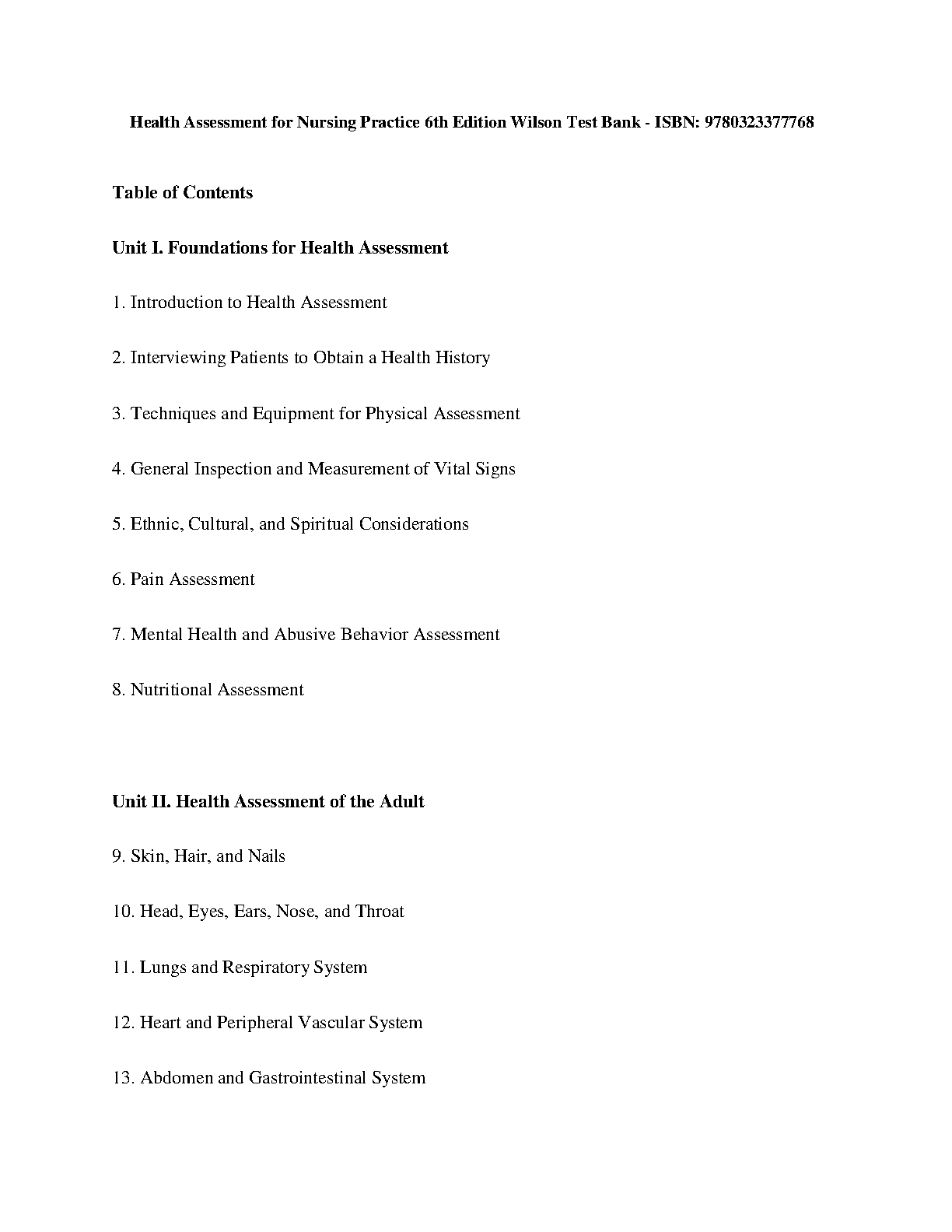 Test Bank for Health Assessment for Nursing Practice, 6th Edition by Susan F. Wilson and Jean Foret Giddens