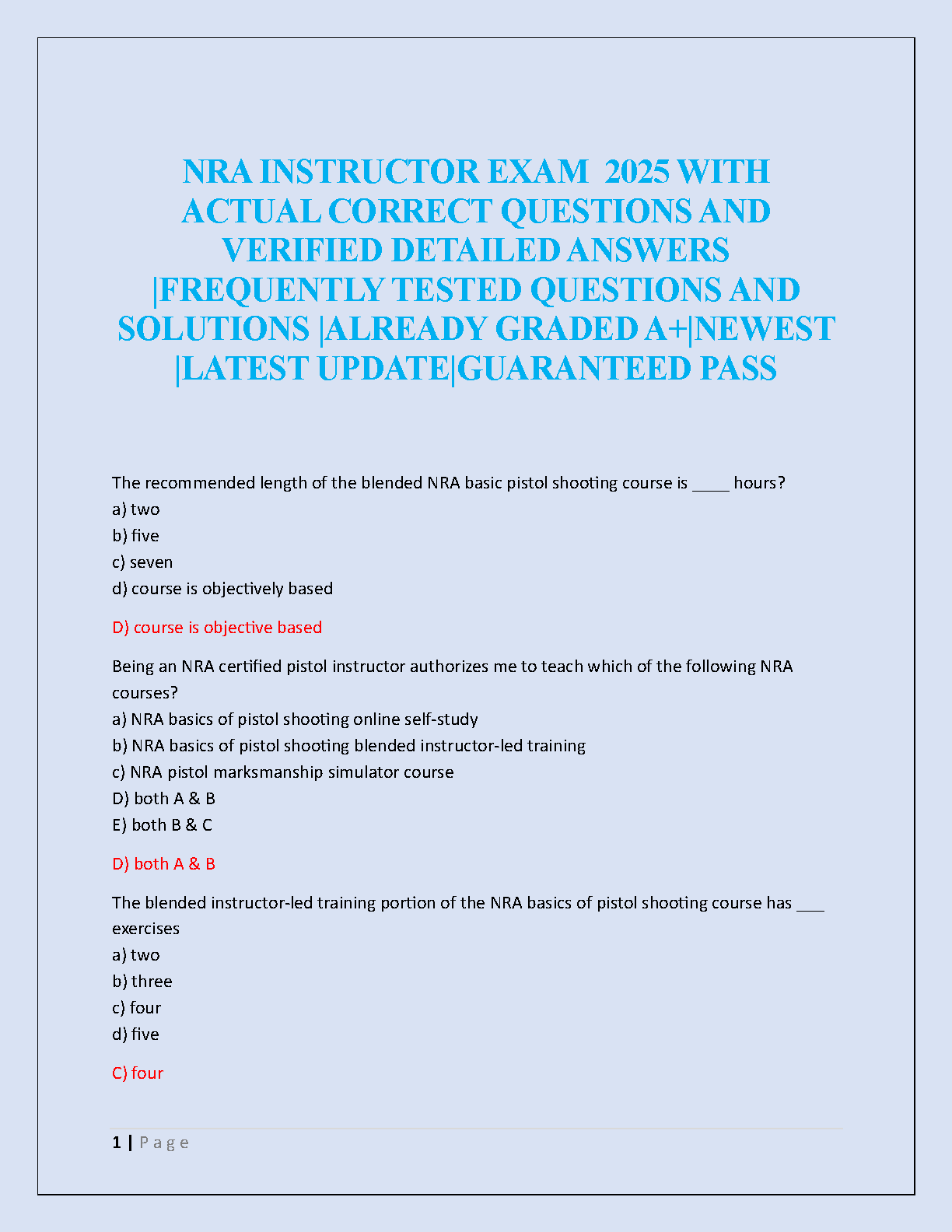 NRA Instructor Exam 2025 Test Bank by the National Rifle Association | Verified Questions & Answers for a Guaranteed Pass