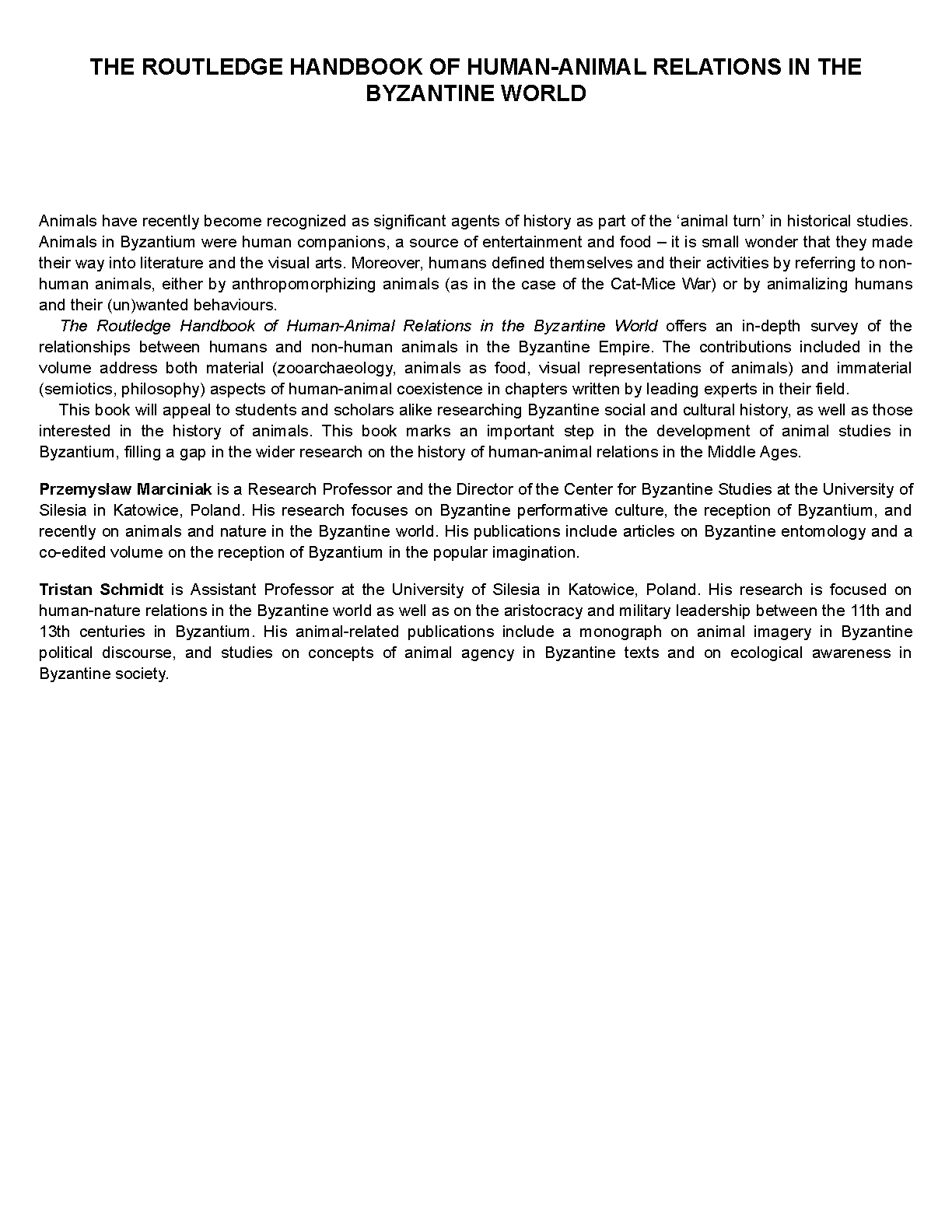 The Routledge Handbook of Human-Animal Relations in the Byzantine World, 1st Edition by Przemysław Marciniak & Tristan Schmidt - 2025/2026 Study Guide for Exam Success