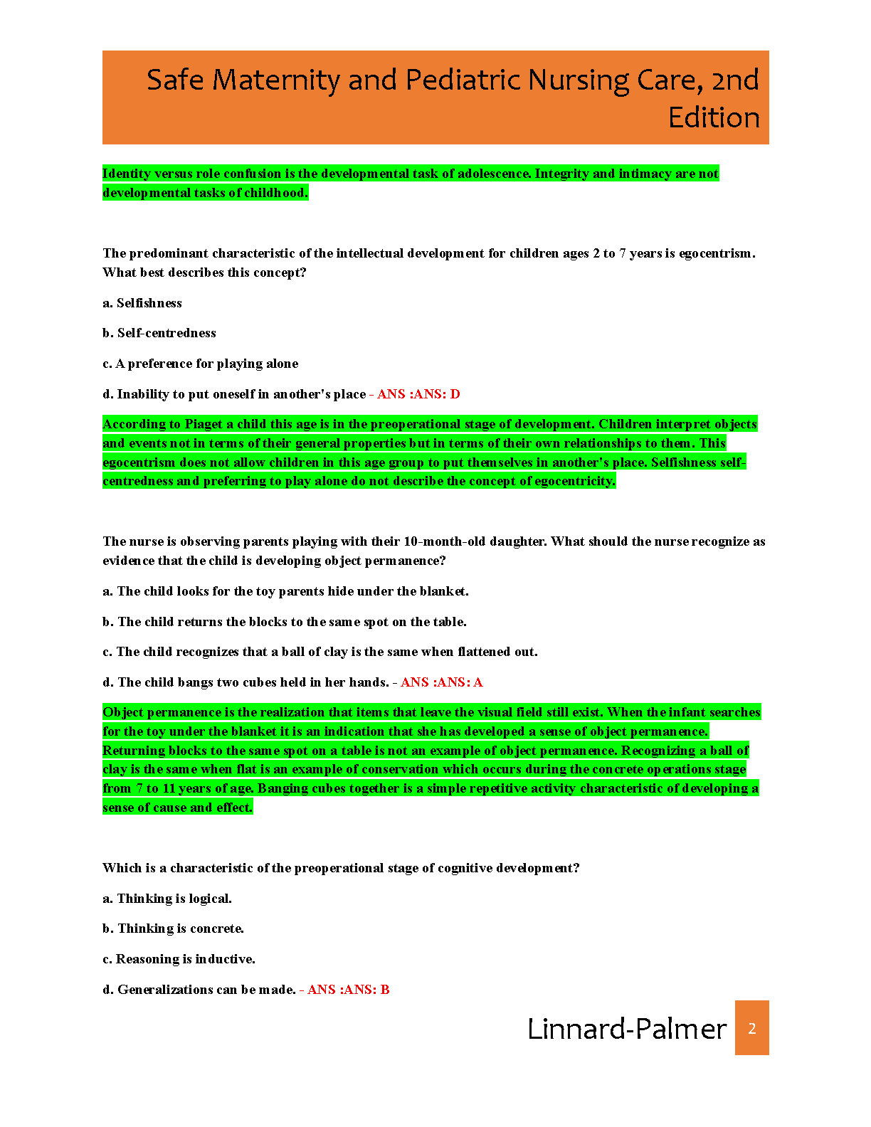 Test Bank for Safe Maternity and Pediatric Nursing Care, 2nd Edition by Luanne Linnard-Palmer