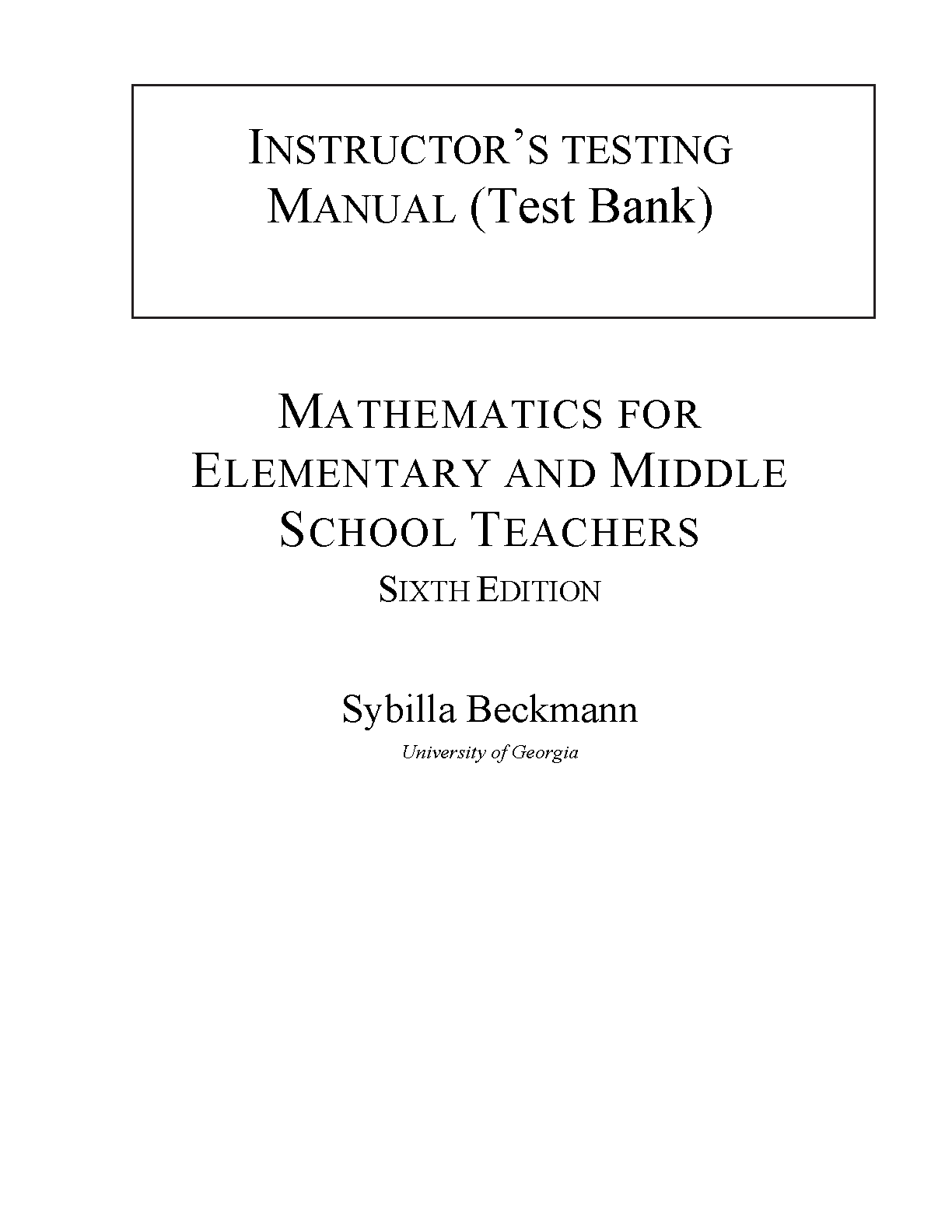 Test Bank for Mathematics for Elementary and Middle School Teachers, 6th Edition by Sybilla Beckmann