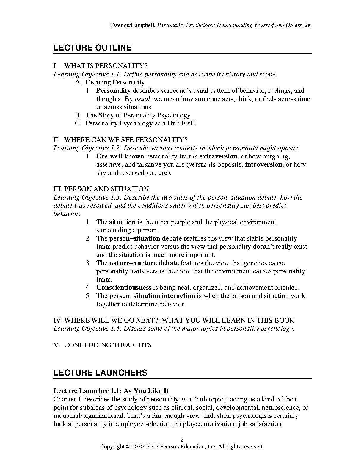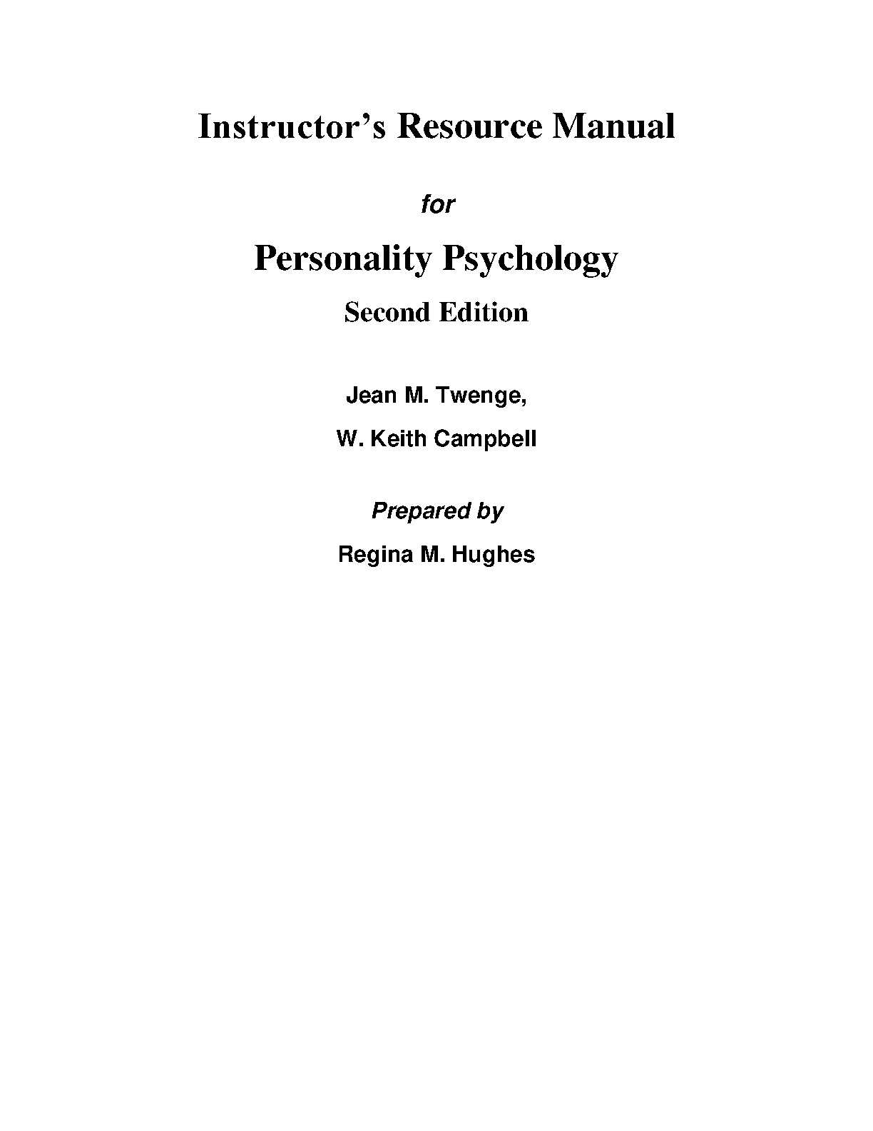 Test Bank for Personality Psychology, 2nd Edition by Jean M. Twenge, W. Keith Campbell