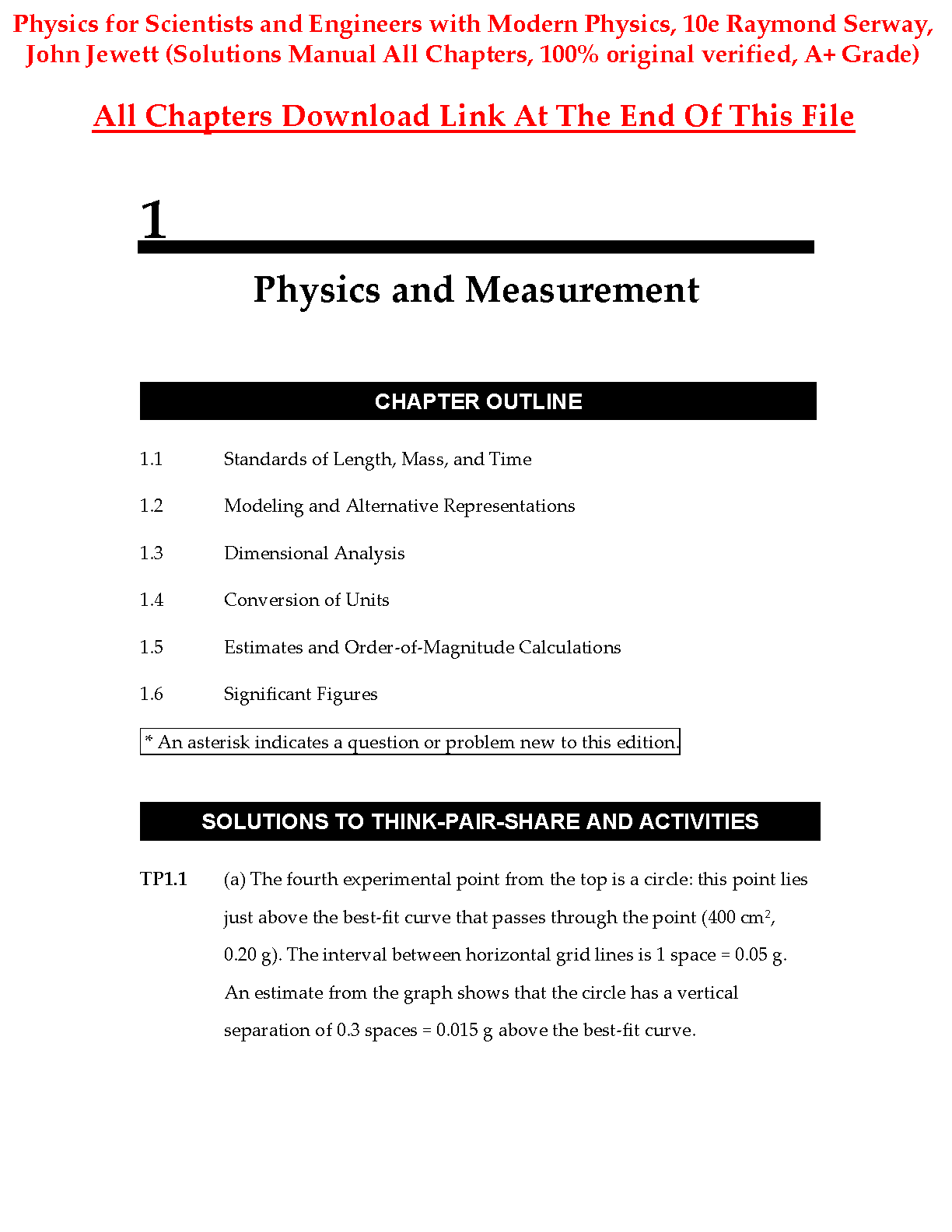 Solutions Manual for Physics for Scientists and Engineers with Modern Physics, 10th Edition by Raymond A. Serway & John W. Jewett - All Chapters