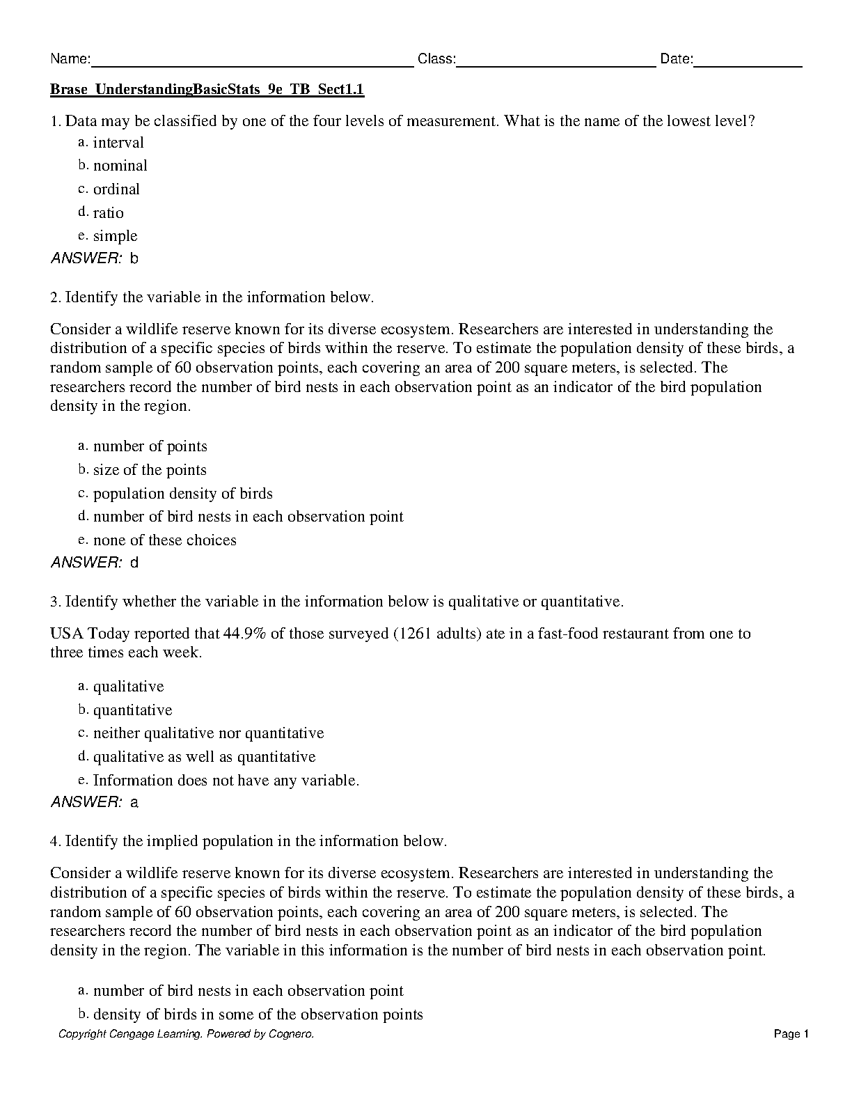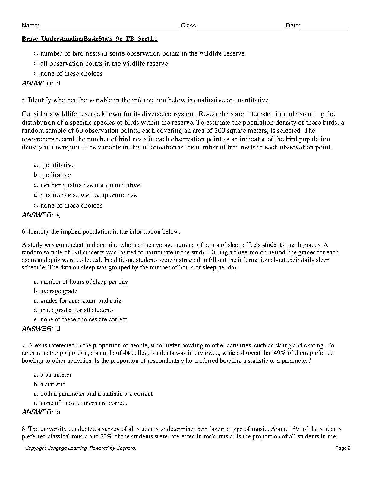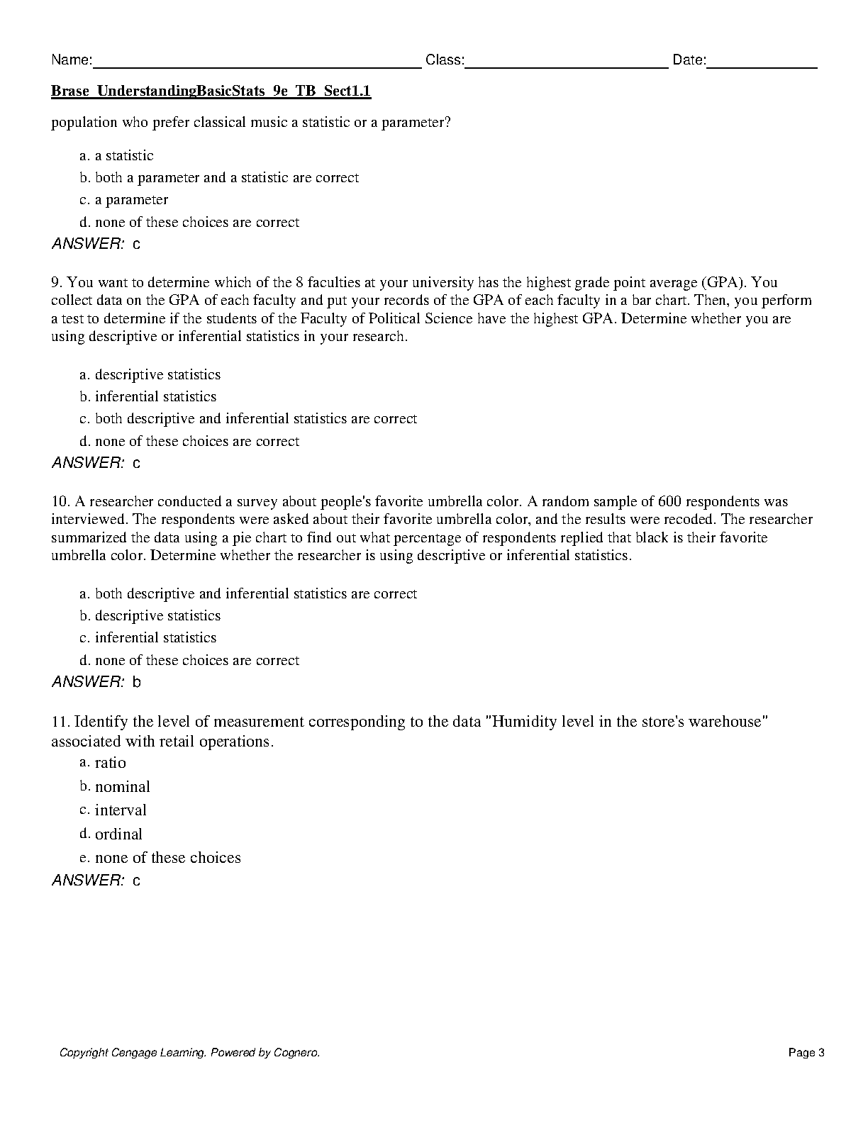 Test Bank for Understanding Basic Statistics, 9th Edition by Charles Henry Brase & Corrinne Pellillo Brase