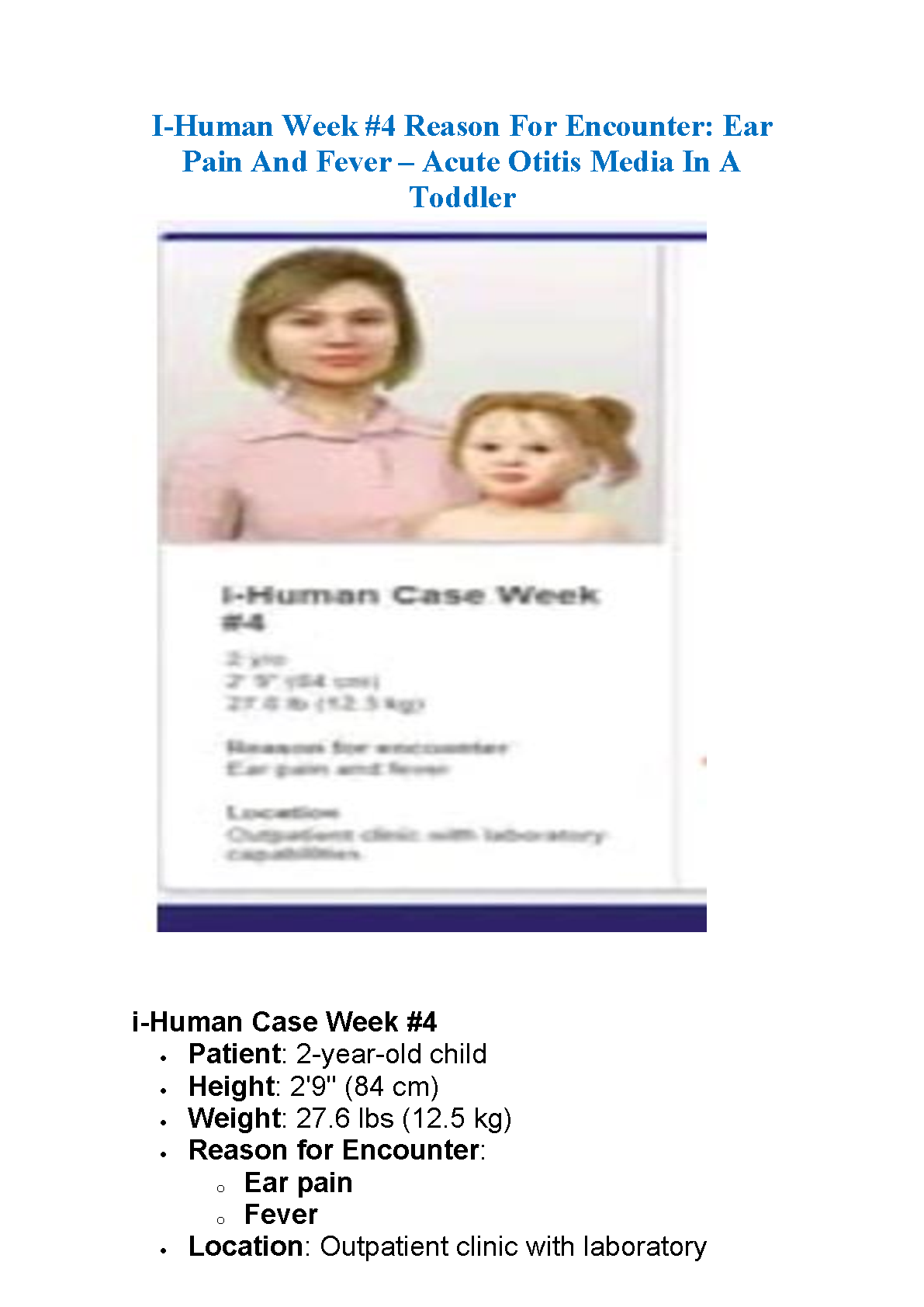 Struggling with the i-Human Week 4 simulation? This is the ultimate study guide for the case of a 2-year-old toddler with ear pain and fever due to Acute Otitis Media. Our comprehensive resource, fully updated for the 2025/2026 academic year, provides step-by-step solutions, key findings, and correct diagnoses. Master the case, enhance your clinical reasoning skills, and guarantee a top score on your first attempt, helping you avoid costly resits and stay on track in your nursing or medical program.