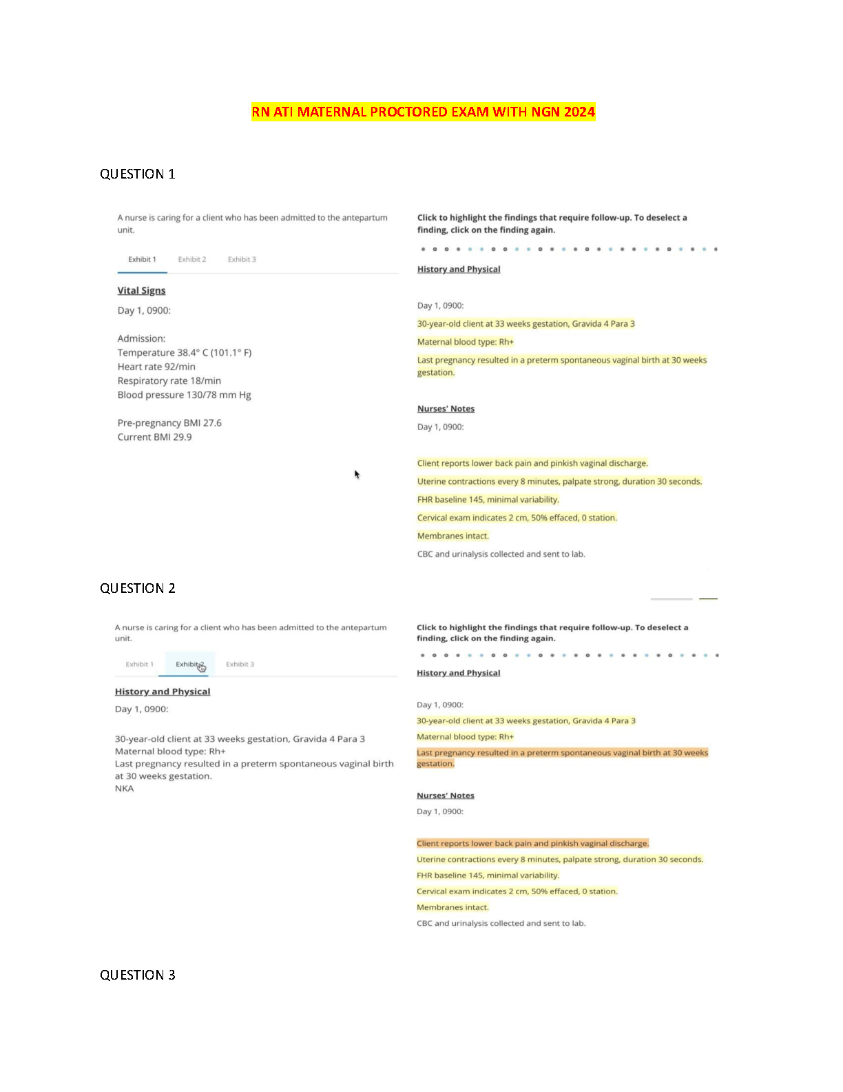 ATI RN Maternal Nursing Proctored Exam NGN 2024: Verified Test Bank with Questions & Answers