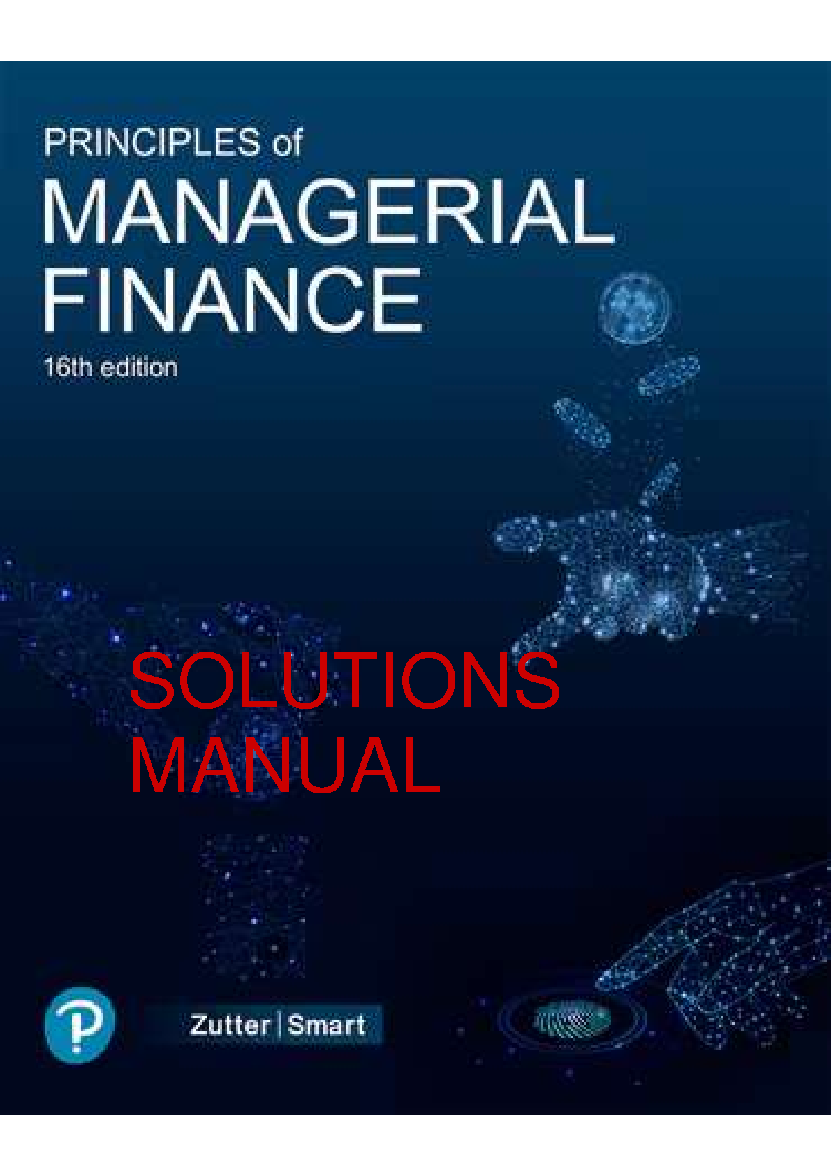 Unlock your full potential and master complex financial concepts with the official Solutions Manual for 'Principles of Managerial Finance, 16th Edition'. Authored by Chad J. Zutter and Scott B. Smart, this guide provides verified, step-by-step solutions to all the textbook problems. It is the ultimate study companion for students aiming to excel in their exams, providing the clarity and practice needed to solve problems accurately and efficiently. Boost your confidence and your grades with this indispensable resource.