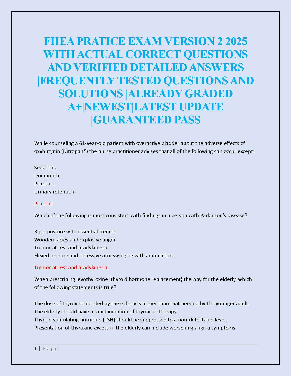 Prepare for success with the FHEA Practice Exam Version 2 for 2025. This comprehensive test bank is your ultimate study tool, featuring a collection of actual, frequently tested questions complete with verified, detailed answers and solutions. Our resource is meticulously compiled to cover all essential topics, ensuring you are fully prepared for the real exam. Achieve an A+ grade and pass with confidence on your first attempt. This is the latest, most up-to-date guide available, designed to help you avoid resits and fast-track your certification.