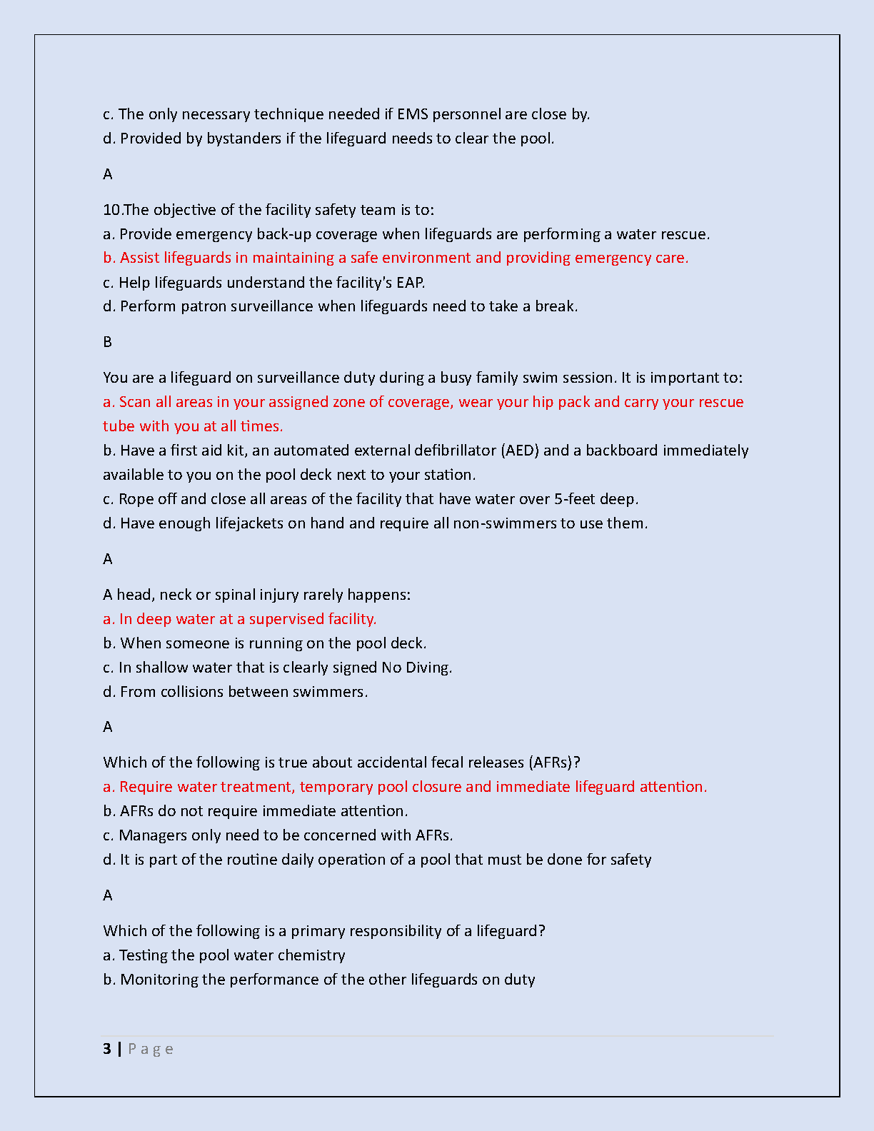 American Red Cross Lifeguarding Manual Test Bank 2025: 3 Complete Versions with Verified Questions and Answers to Ace Your Certification Exam