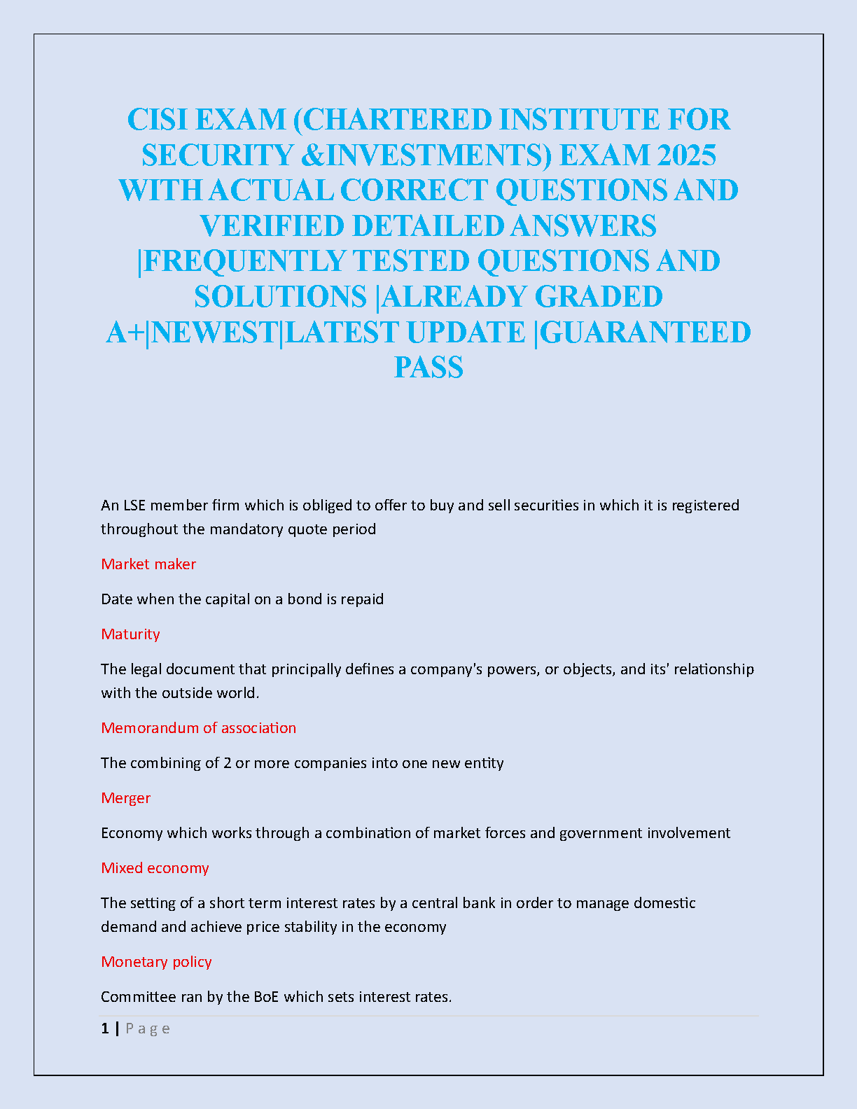 Ace your Chartered Institute for Security & Investments (CISI) exam with our premier 2025 test bank. This comprehensive resource is expertly curated with a vast collection of actual exam questions and meticulously verified, detailed answers. Focusing on frequently tested concepts and key definitions, our guide provides everything you need to build confidence and master the material. Eliminate exam-day surprises and avoid the stress and expense of resits. With this latest, A+ graded study tool, you are fully equipped for a guaranteed pass on your first attempt. Download now and take the most effective step towards your CISI certification!