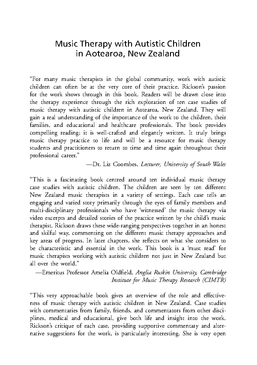 Music Therapy with Autistic Children in Aotearoa, New Zealand, 1st Edition by Daphne Rickson - 2025/2026 Exam Success Guide