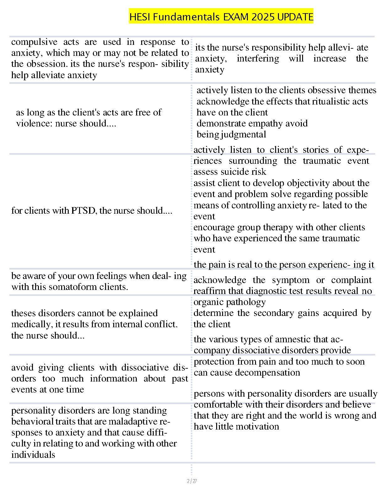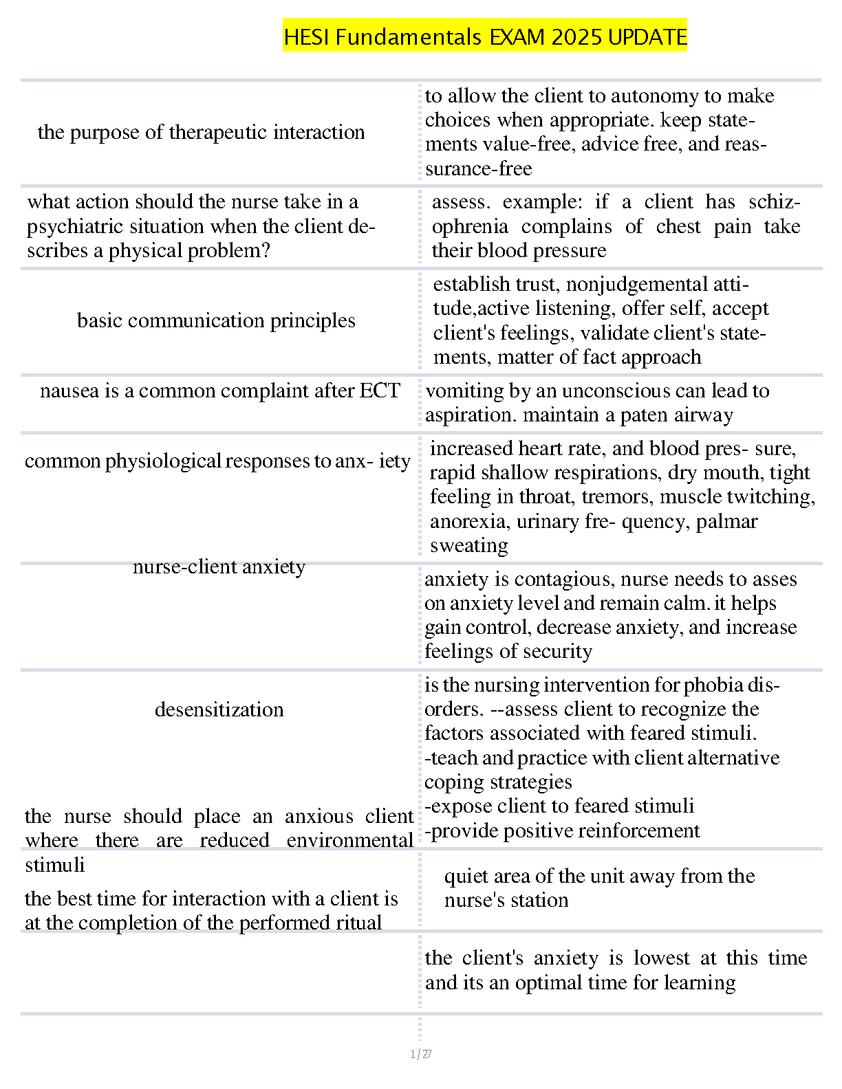Master the essentials of nursing with our latest HESI Fundamentals Exam Study Guide, fully updated for the 2025-2026 academic year. This comprehensive resource is expertly crafted to ensure you pass on your first try. It features a detailed question-and-answer format covering crucial topics such as therapeutic communication, patient anxiety, physiological responses, and psychiatric nursing principles. Stop worrying about resits and gain the confidence you need to excel. Download now and take the most effective step towards acing your HESI Fundamentals exam!