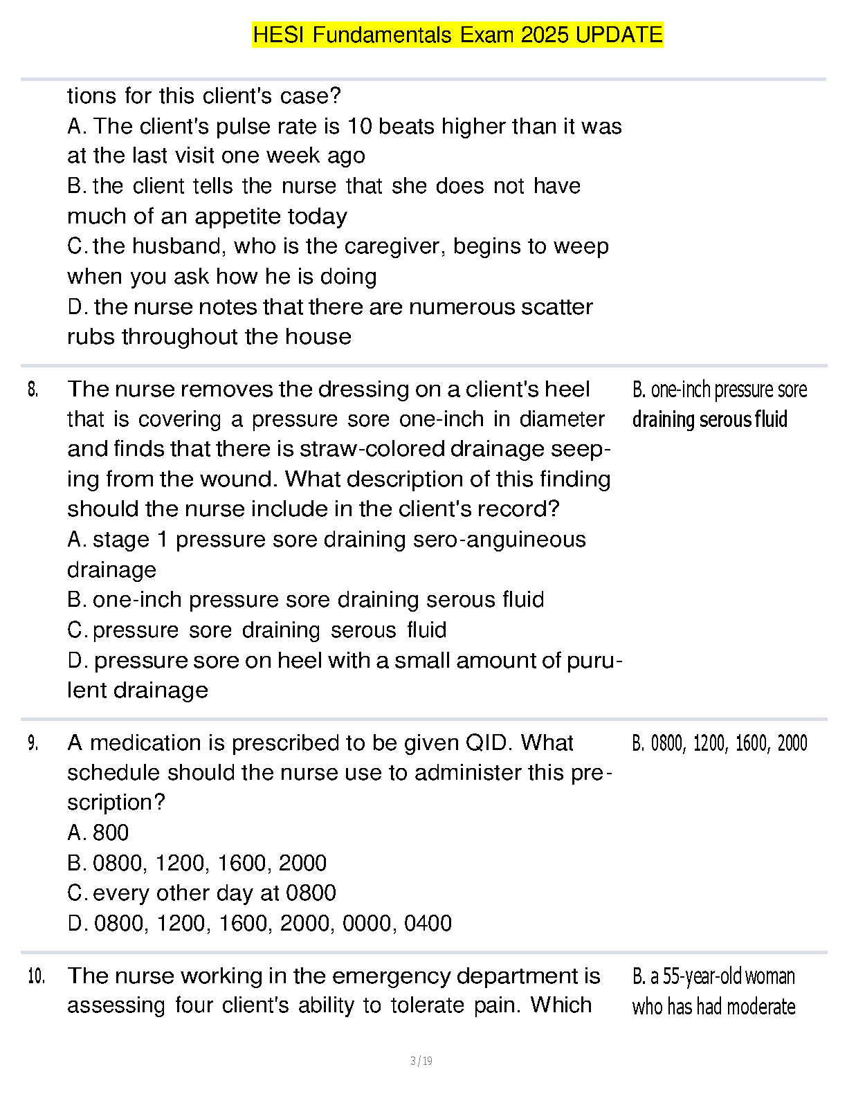 Master the HESI Fundamentals exam with our comprehensive and fully updated 2025/2026 study guide. This resource is meticulously crafted with a wide range of practice questions and verified answers that cover all critical areas of fundamental nursing. Designed for students aiming to excel, this guide will help you build confidence, master core concepts, and pass your exam on the first attempt, eliminating the need for costly and stressful resits. Your essential tool for acing the HESI is here.