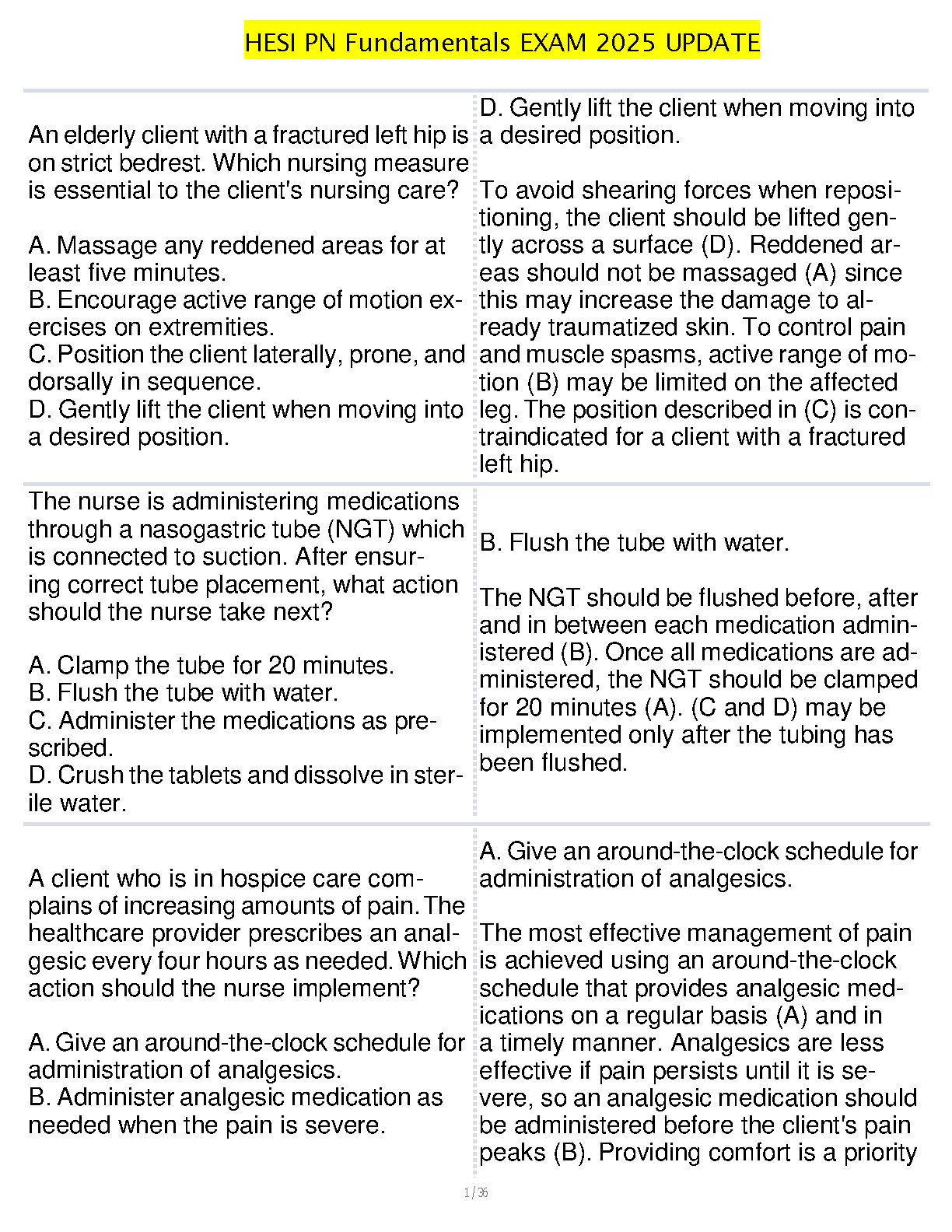 HESI PN Fundamentals 2025 Exam Test Bank: Master Key Concepts with Q&A and Rationales to Pass on Your First Try