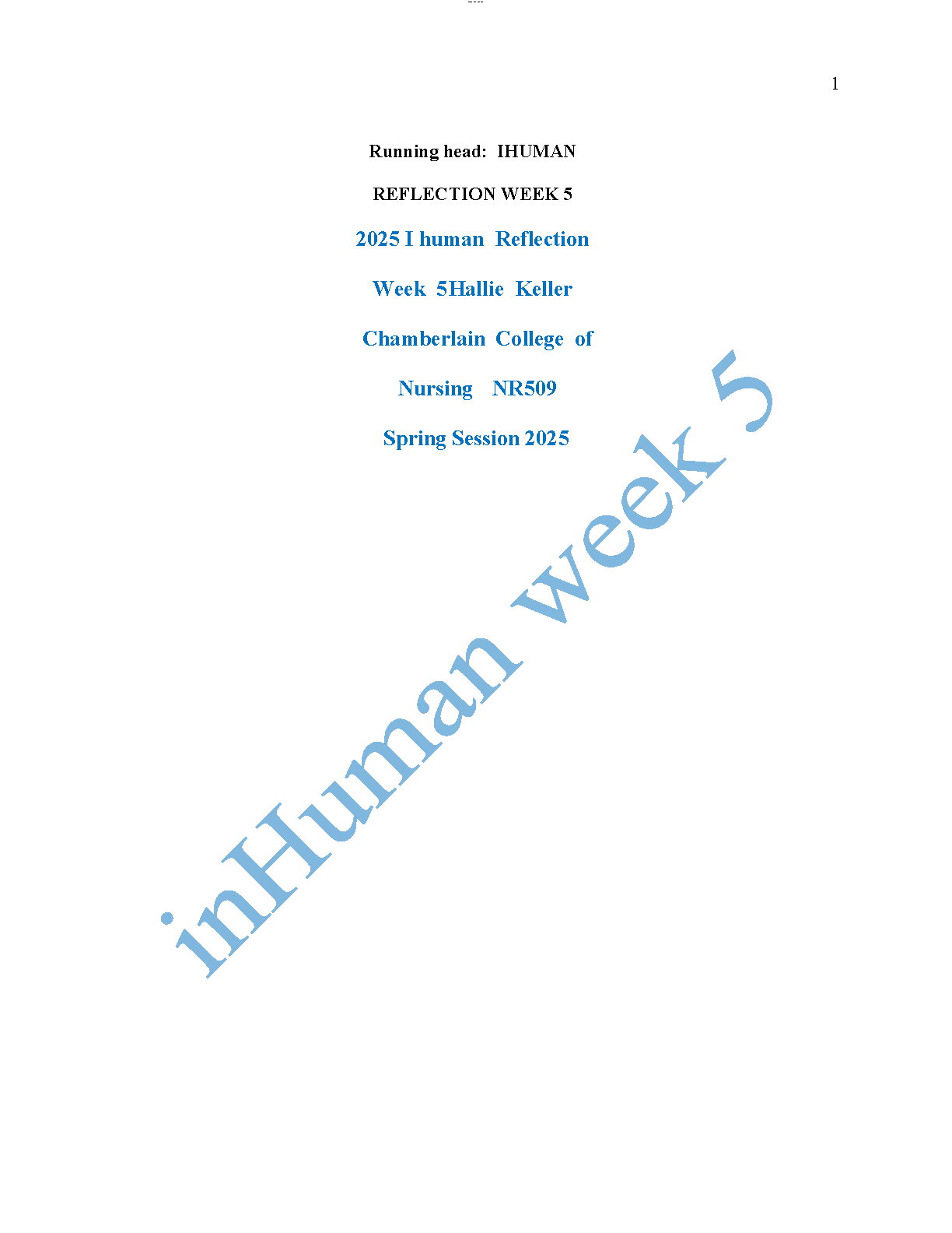 Master NR509: Hallie Keller iHuman Week 5 Reflection | Chamberlain College | 2025/2026 Exam Success Guide