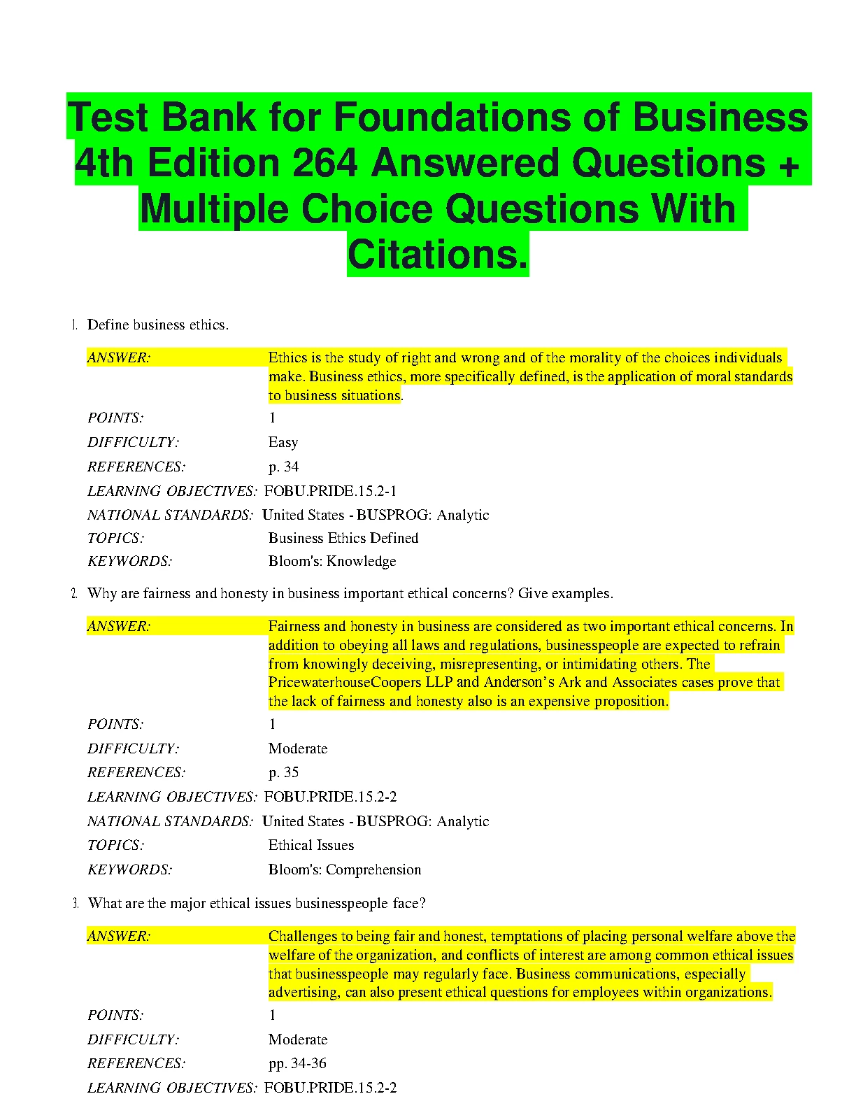Test Bank for Foundations of Business 4th Edition (264) LATEST UPDATED VERSION