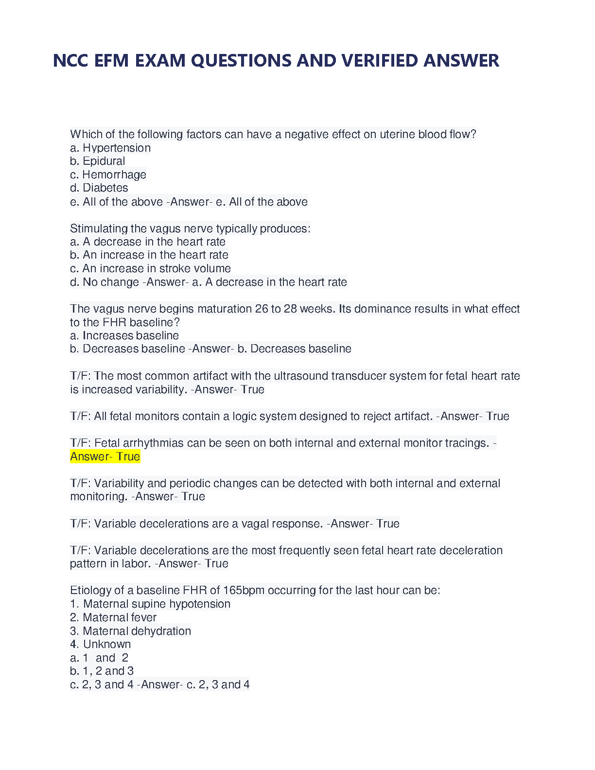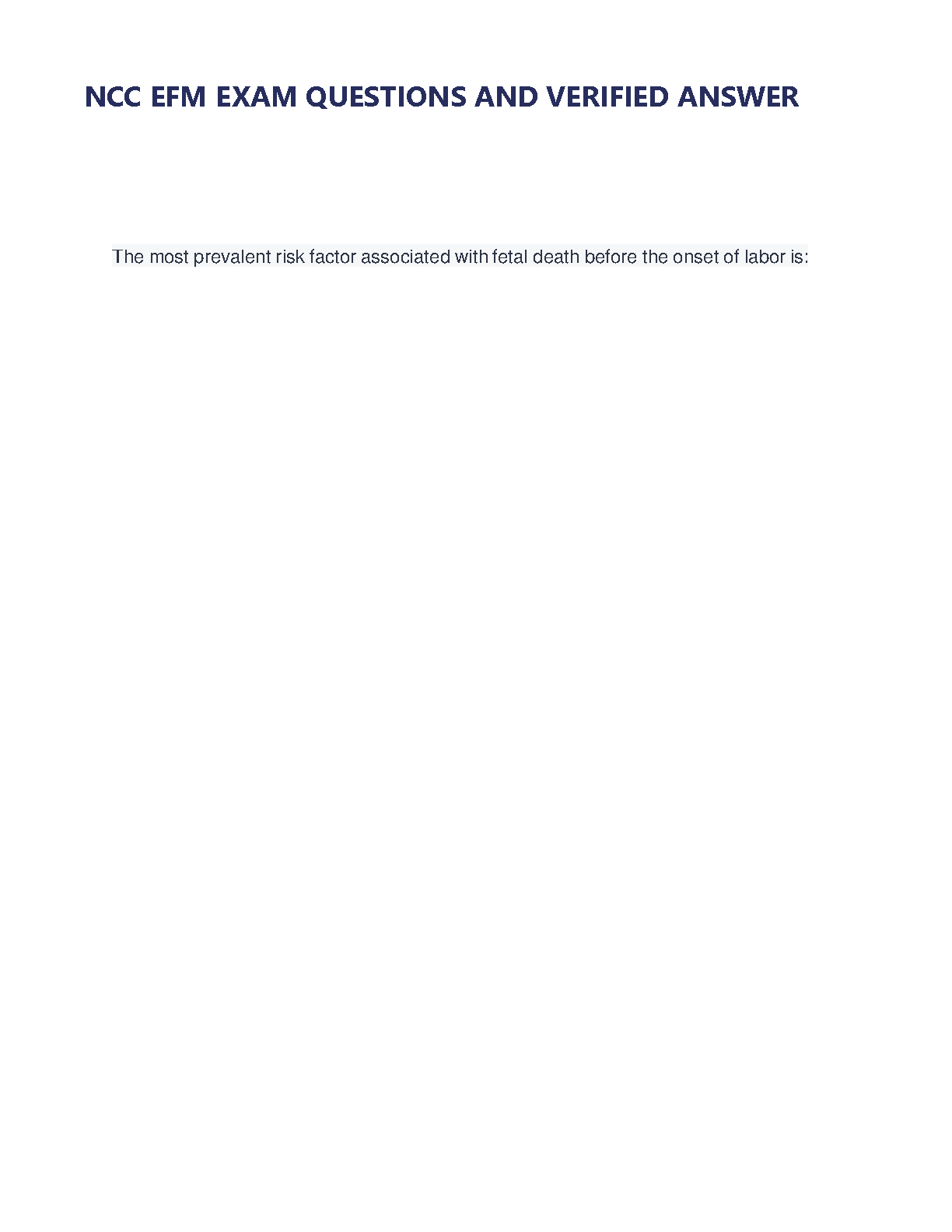 Prepare to excel in your National Certification Corporation (NCC) Electronic Fetal Monitoring (EFM) exam with this definitive test bank. This essential study guide features a vast collection of up-to-date exam questions, each accompanied by a thoroughly verified answer. Designed to mirror the actual certification test, this resource allows you to practice, identify knowledge gaps, and build the confidence needed to achieve a passing score on your first attempt. Unlock your potential and take the next step in your nursing career with our comprehensive NCC EFM exam preparation tool.