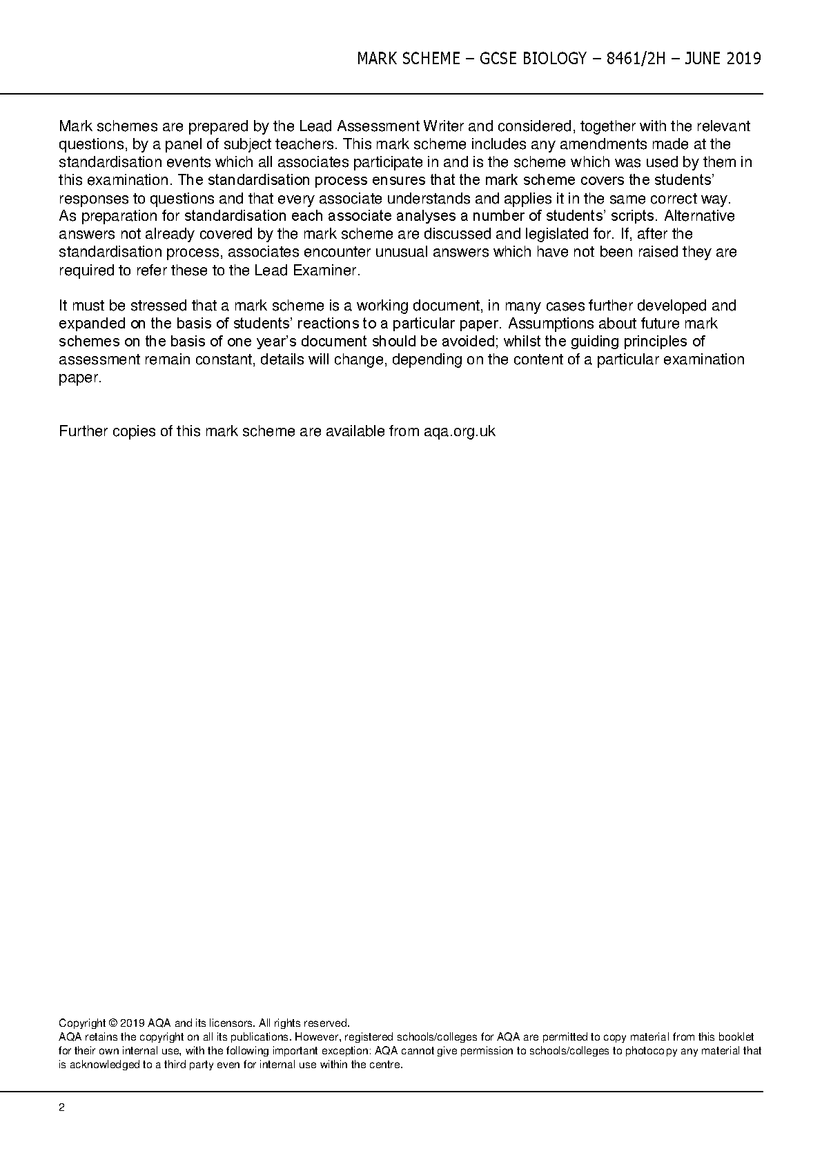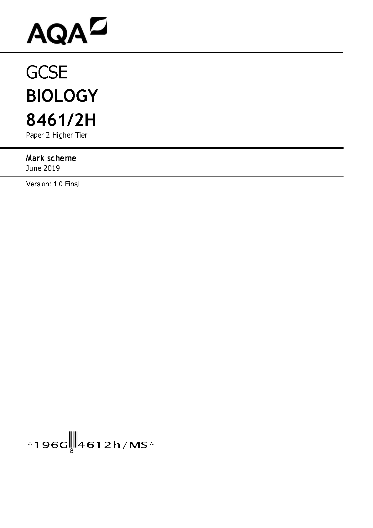 Master Your Exams: AQA GCSE Biology (8461/2H) Higher Tier Paper 2 June 2019 Mark Scheme | 2025/2026 Edition for First-Time Pass