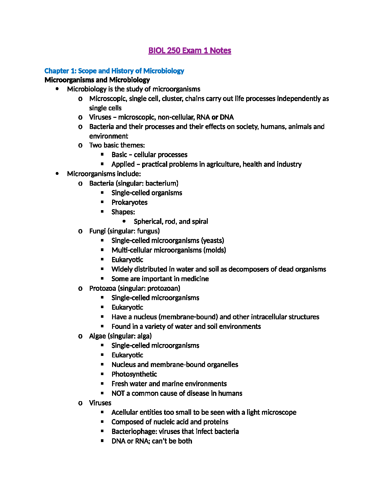 BIOL 250 Exam 1 Microbiology Notes (Based on Tortora, Funke & Case) | Latest 2025/2026 Study Guide to Pass on Your First Attempt