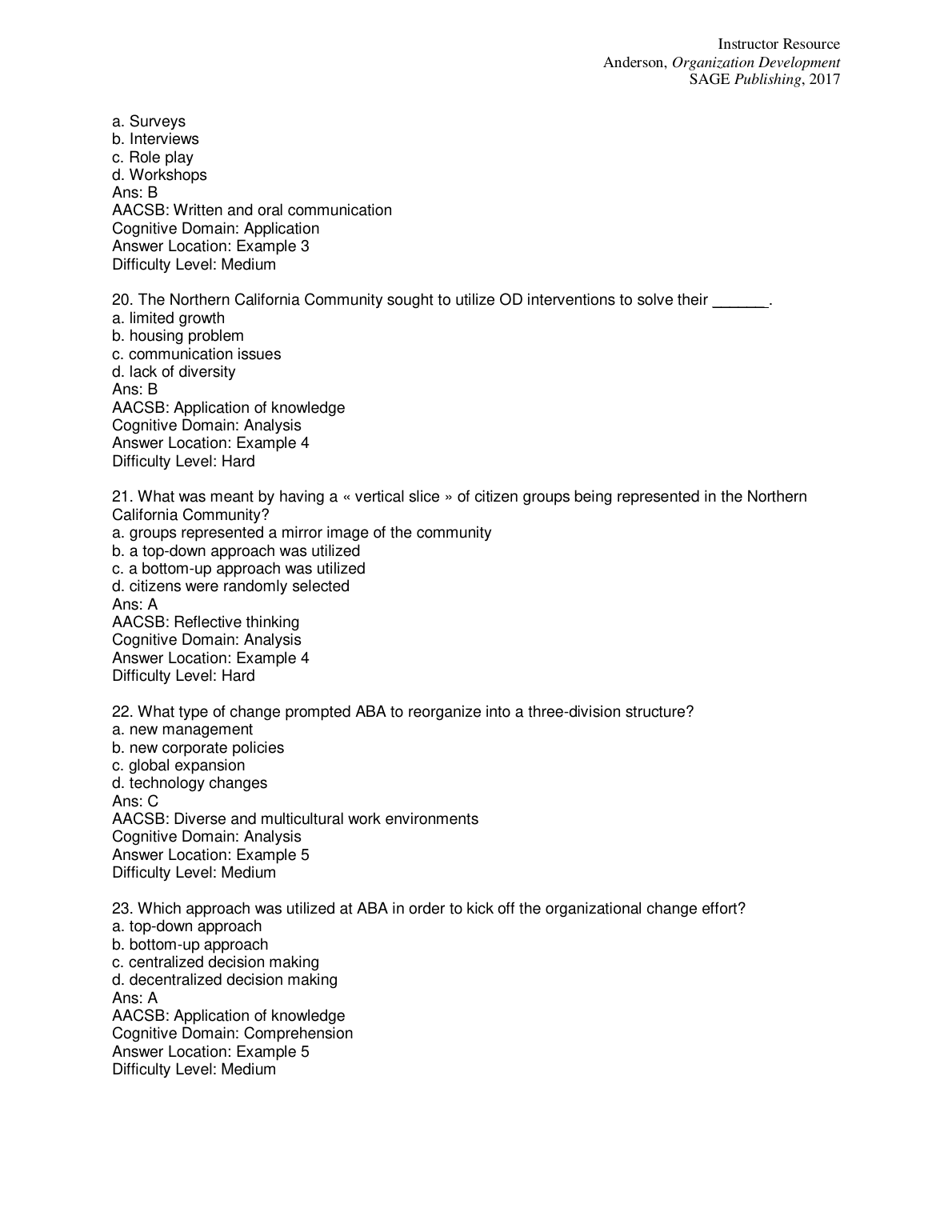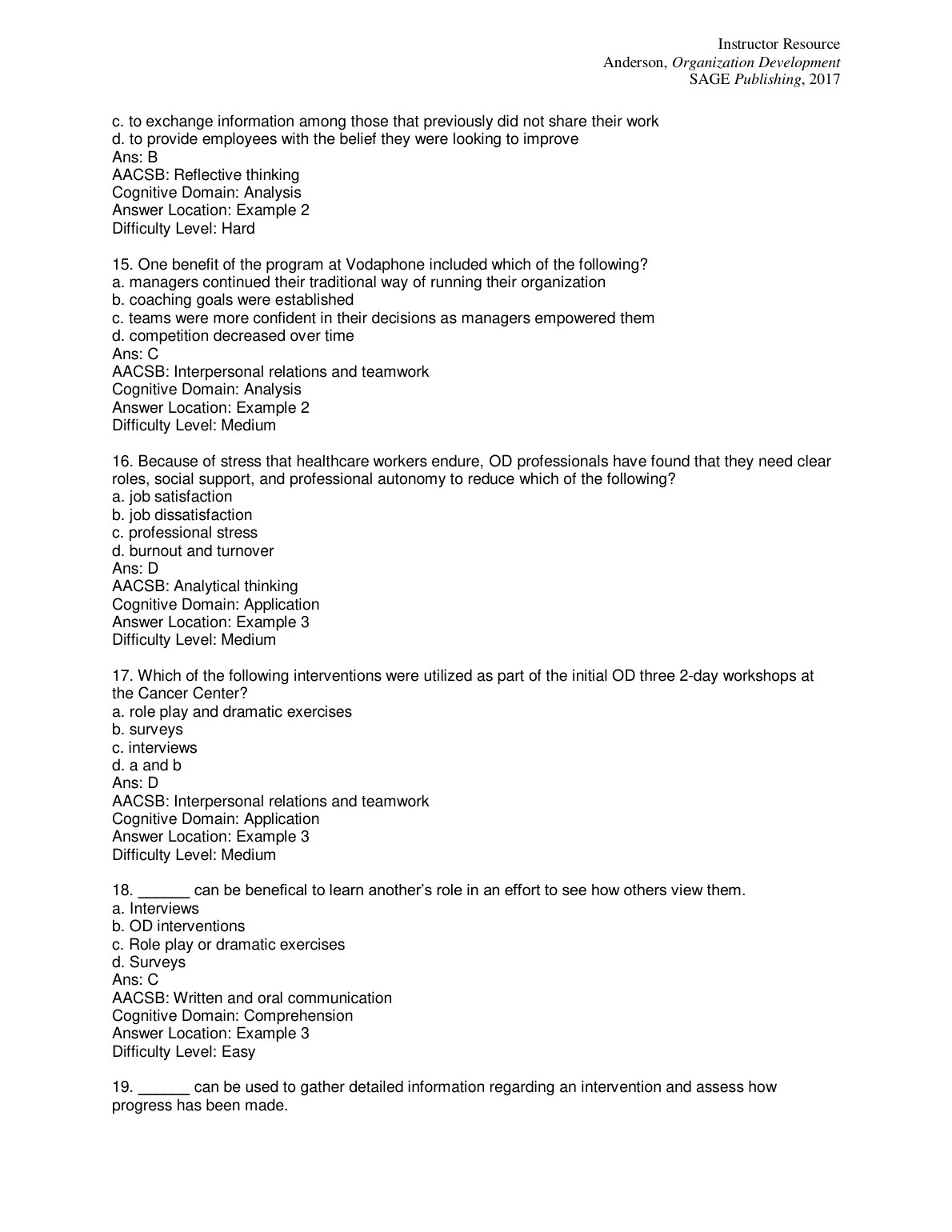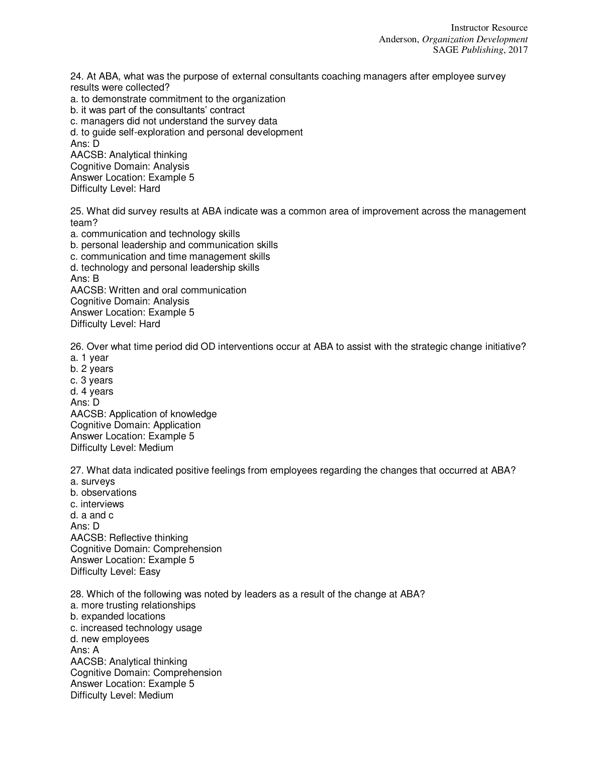 Instructor Resource Anderson, Organization Development SAGE Publishing, TEST BANK