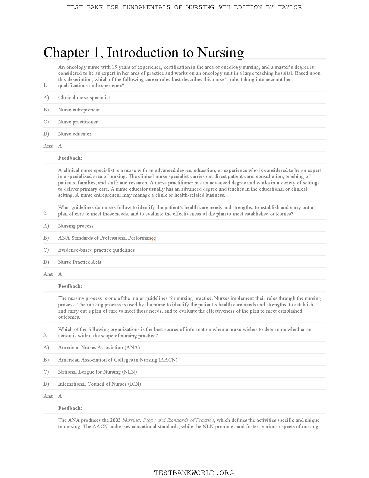 Master the core principles of nursing with this complete and official Test Bank for 'Fundamentals of Nursing: The Art and Science of Person-Centered Care, 9th Edition'. Authored by Taylor, Lynn, and Bartlett, this resource is packed with hundreds of practice questions, detailed answers, and comprehensive rationales for every chapter. It's the ultimate study tool designed to help you thoroughly test your knowledge, grasp complex concepts, and confidently pass your exams. Get immediate access to this digital guide and start preparing for success in your nursing career.