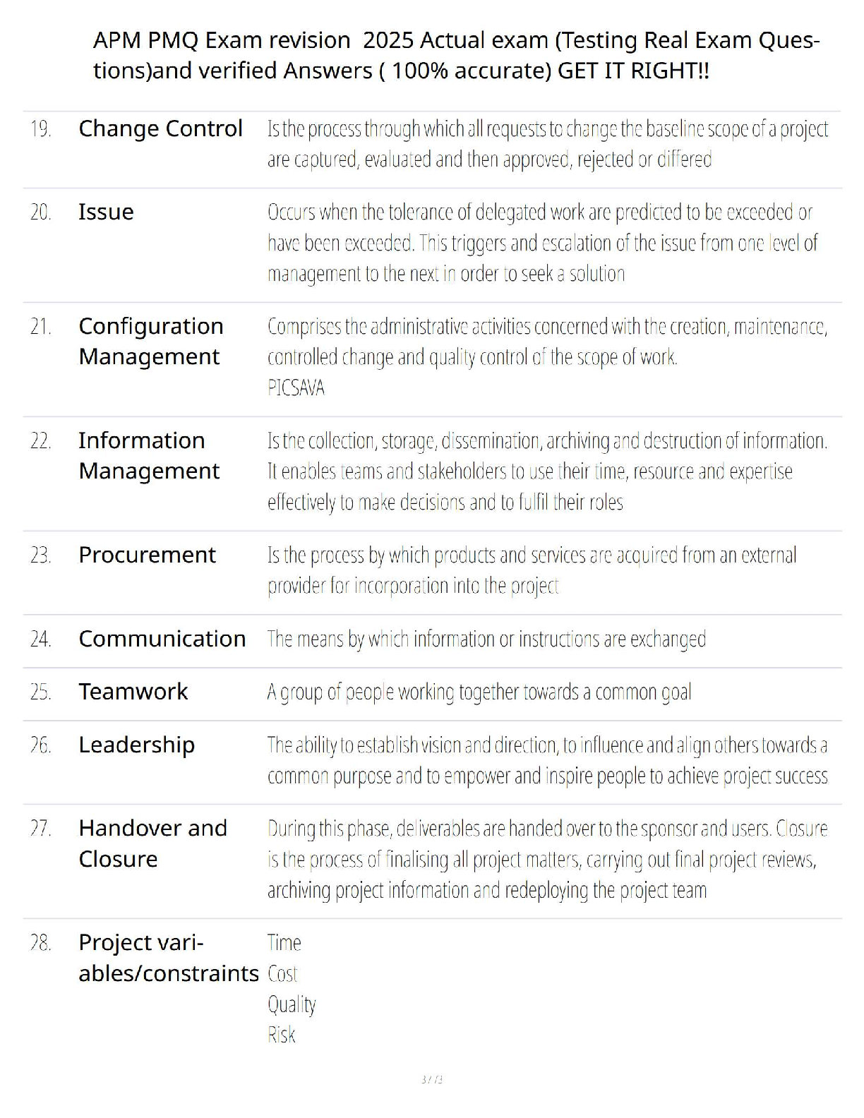 Ready to pass your APM Project Management Qualification (PMQ) exam on the first try? This is the ultimate study resource you need. Our comprehensive 2025/2026 test bank is fully updated and aligned with the APM Body of Knowledge 7th Edition (BoK7). It features a complete collection of actual exam questions paired with 100% accurate, verified answers. Master key concepts from Project Success Criteria to Stakeholder Management with this easy-to-use Q&A format. Stop worrying about resits and start studying smarter. Download now to gain the confidence and knowledge to ace your APM PMQ certification!