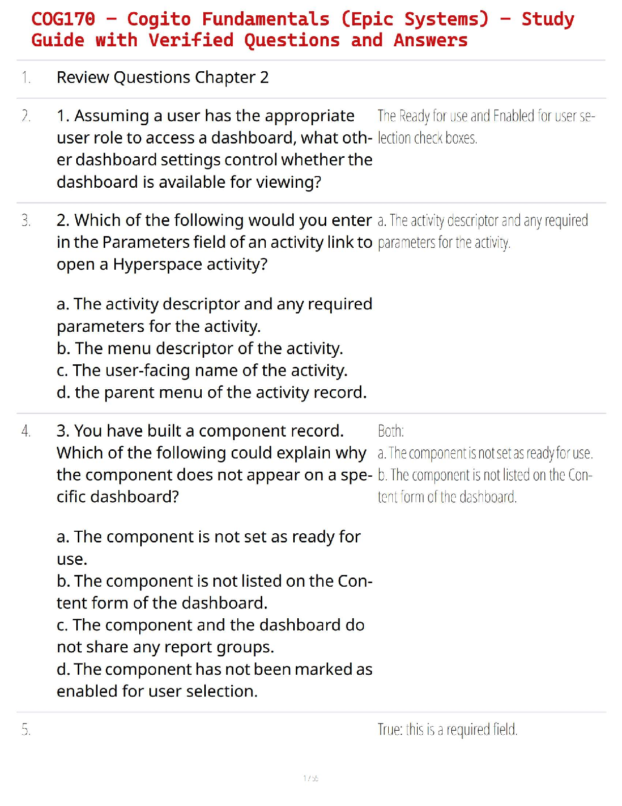 COG170 Cogito Fundamentals (Epic Systems) Test Bank: Verified Questions and Answers for Certification Exam Success