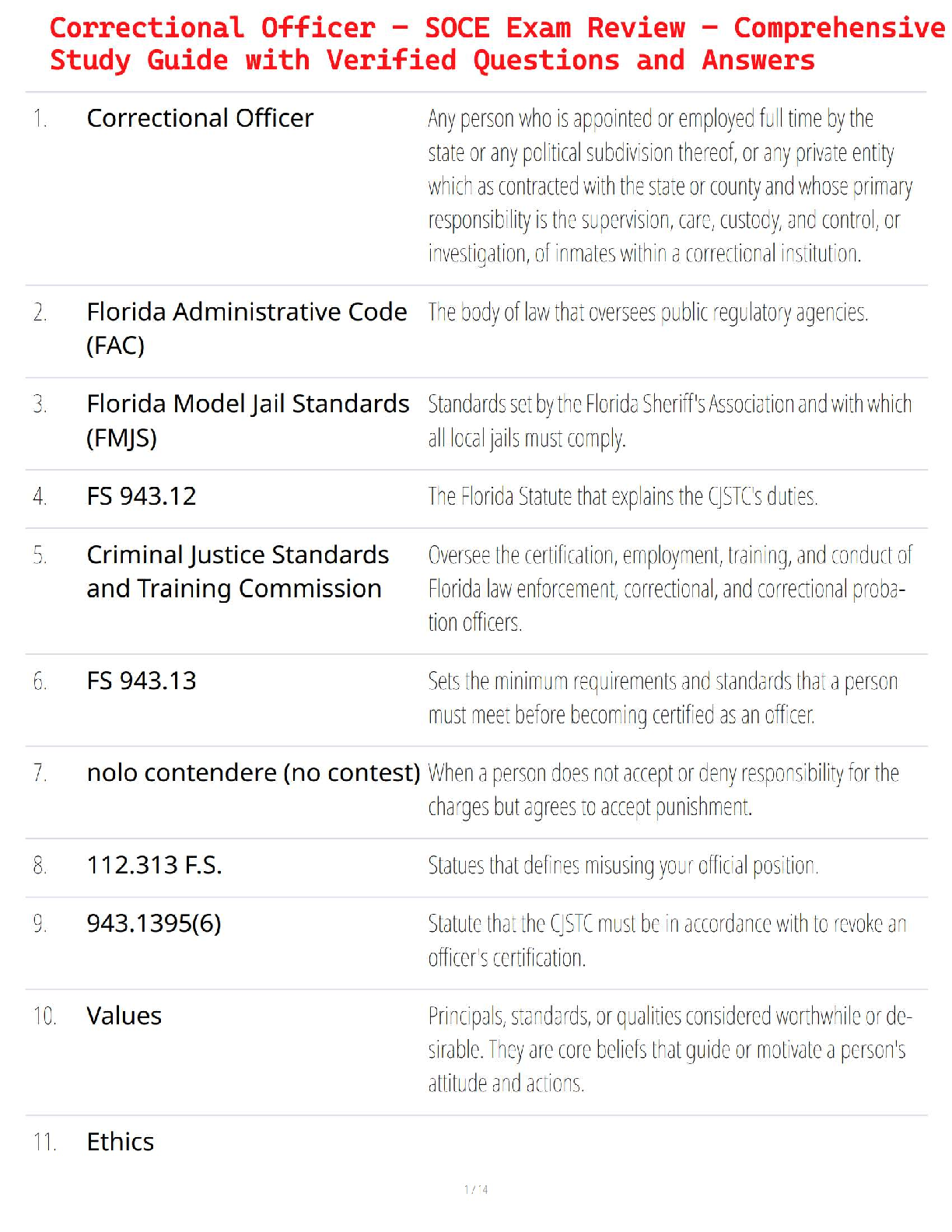 Get ready to ace the Florida State Officer Certification Examination (SOCE) for Correctional Officers with this all-inclusive study guide for the 2025/2026 academic year. This comprehensive resource is packed with verified questions and detailed answers, covering all the essential topics you need to know. From the Florida Administrative Code (FAC) and Model Jail Standards (FMJS) to critical statutes and ethical principles, this guide is meticulously designed to help you master the material, build confidence, and pass your certification exam on the very first attempt, eliminating the need for costly and time-consuming resits.