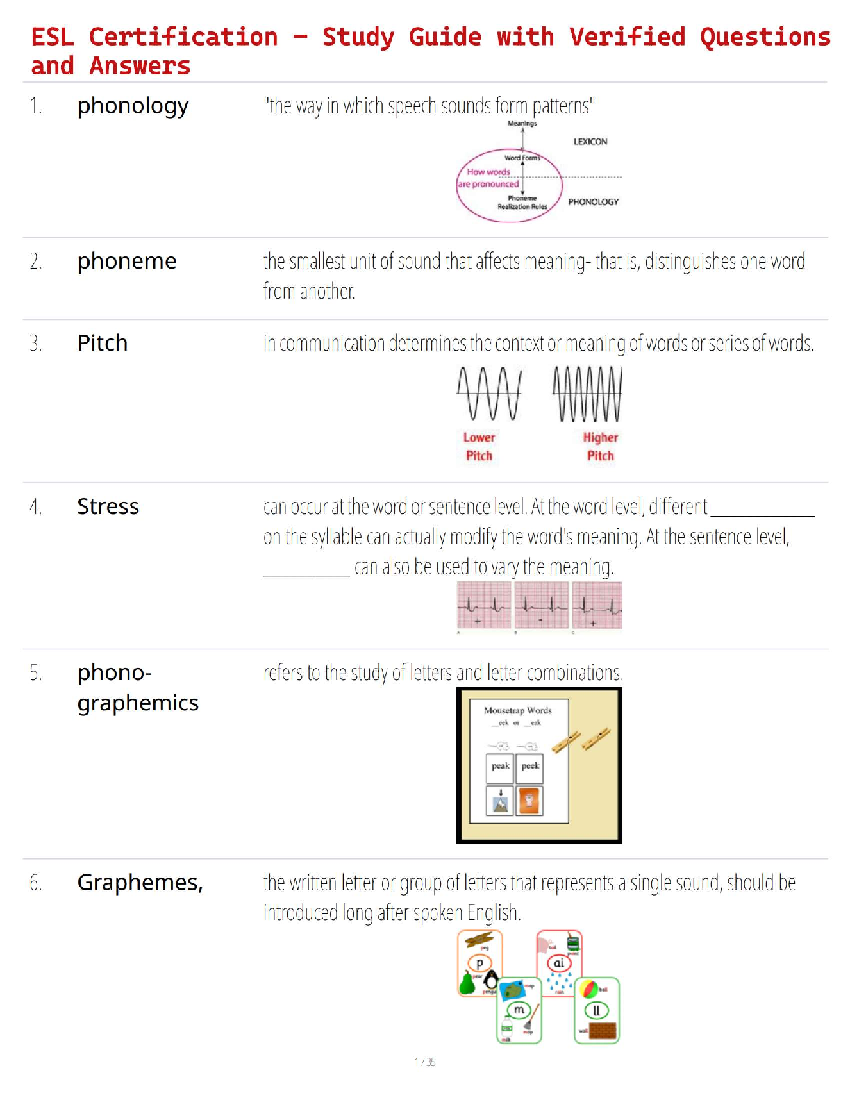Unlock your potential as an English language teacher with our latest 2025/2026 ESL Certification Study Guide. This comprehensive resource is expertly designed to help you master crucial concepts and pass your certification exam on the very first attempt. Dive deep into essential topics, including phonology, phonemes, pitch, stress, and graphemics, all explained clearly with verified questions and detailed answers. Avoid the stress of resits and fast-track your teaching career. Download now and get fully prepared to ace your ESL certification!