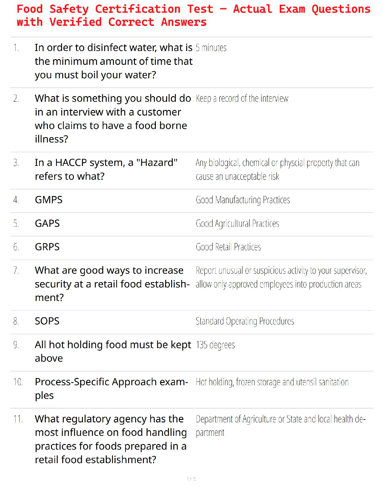 Food Safety Certification Test Bank: A Comprehensive Q&A Guide with Verified Answers for Exam Success