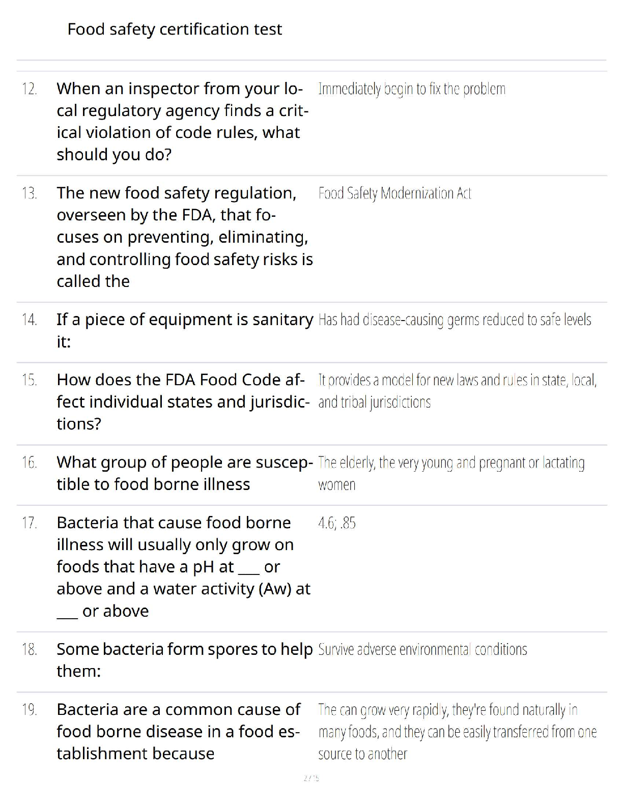 Achieve your Food Safety Certification effortlessly with this premium test bank. Inside, you'll find a curated collection of actual exam questions, each paired with a verified, correct answer to ensure you're studying the right material. This essential study guide covers all key areas, including HACCP systems, safe food handling, sanitation procedures, temperature control, and regulatory compliance. Stop guessing and start mastering the concepts needed to pass your exam with flying colors on your first attempt.