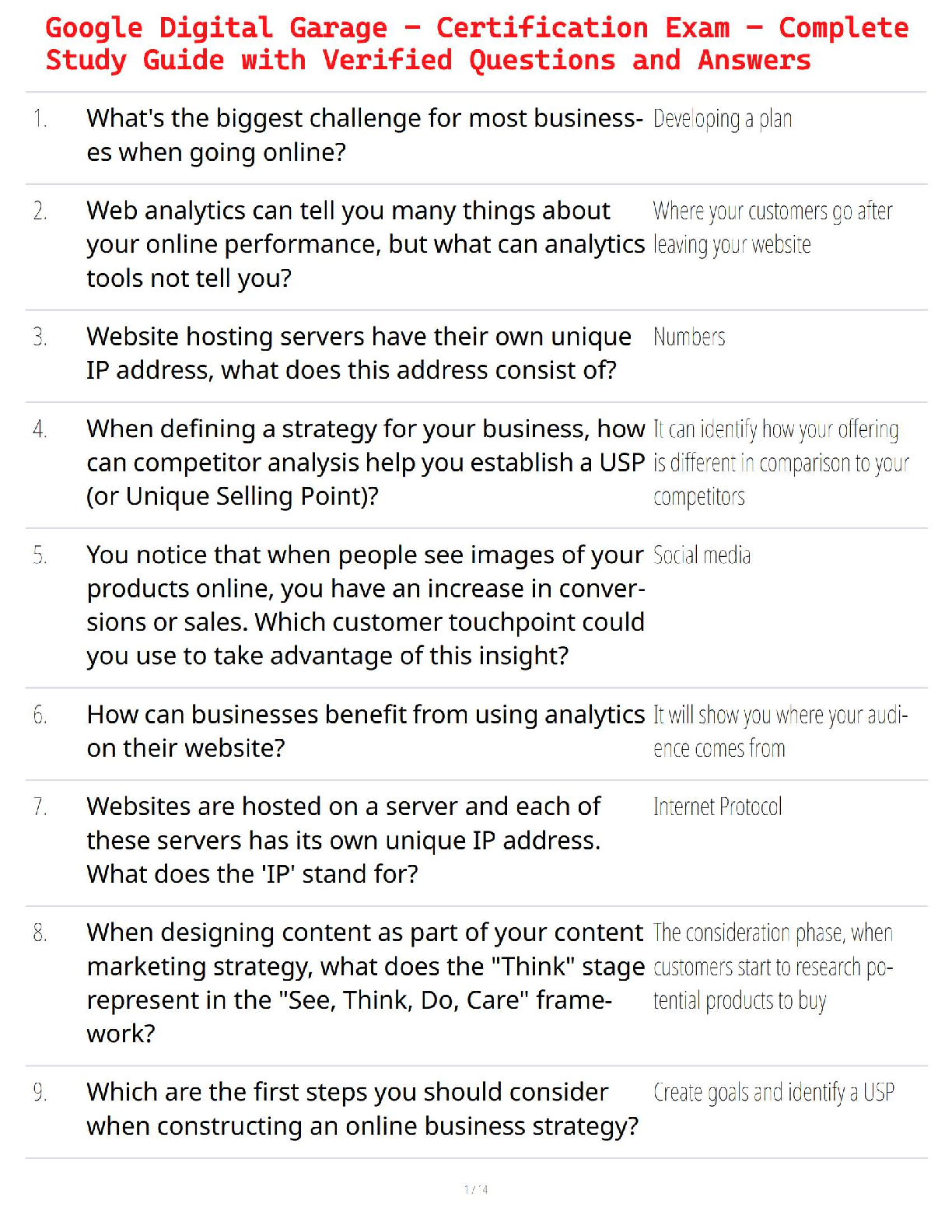 Ace your Google Digital Garage certification on the first try! This complete study guide is a comprehensive test bank featuring the latest, verified questions and detailed answers for the exam. Master key concepts in digital marketing, from web analytics and SEO to online business strategy. This resource is expertly designed to provide you with the exact knowledge needed to pass your certification exam with confidence and avoid resits. Get instant access to all the Q&A you need to succeed.