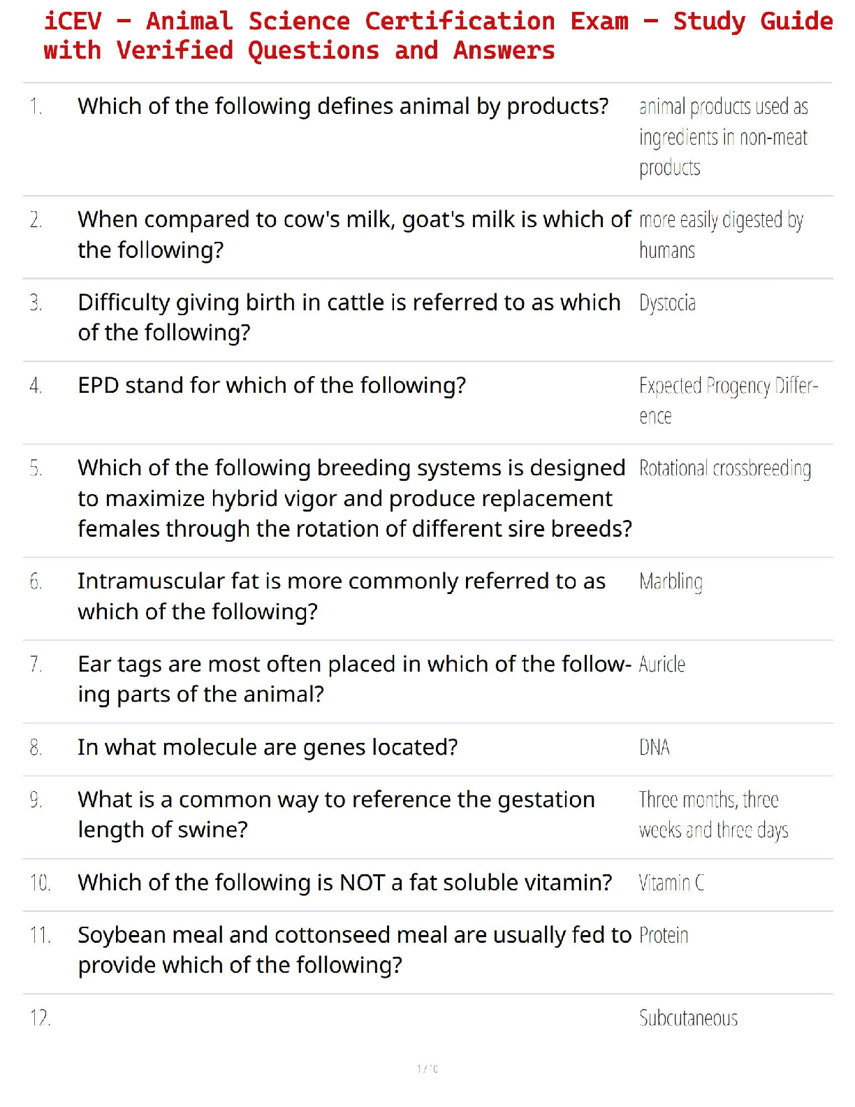iCEV Animal Science Certification Exam Test Bank: Comprehensive Q&A Study Guide for Guaranteed Success