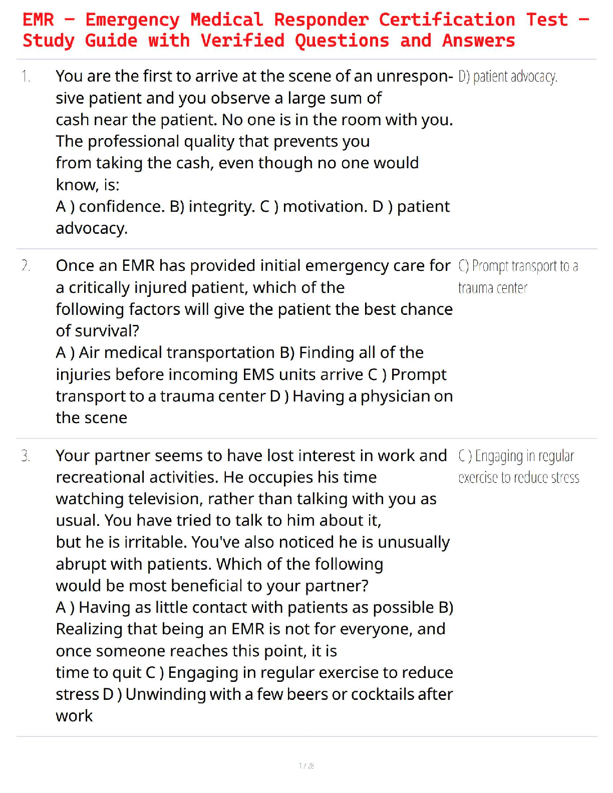 Ace your Emergency Medical Responder (EMR) certification exam with our comprehensive test bank, tailored to the 7th Edition by David Schottke and Chris Le Baudour. This indispensable study resource provides a wealth of verified questions and accurate answers, covering every core topic you'll face on the test. Move beyond simple memorization and gain a true understanding of the material. This guide is your key to passing the EMR certification on your first try. Download now and start preparing with confidence!