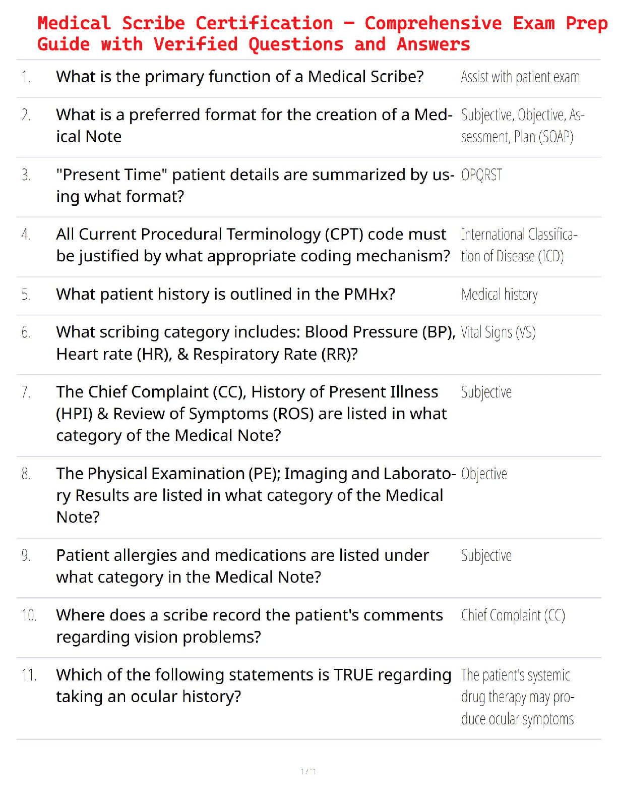 Medical Scribe Certification Exam Test Bank: A Complete Study Guide with Verified Questions and Answers