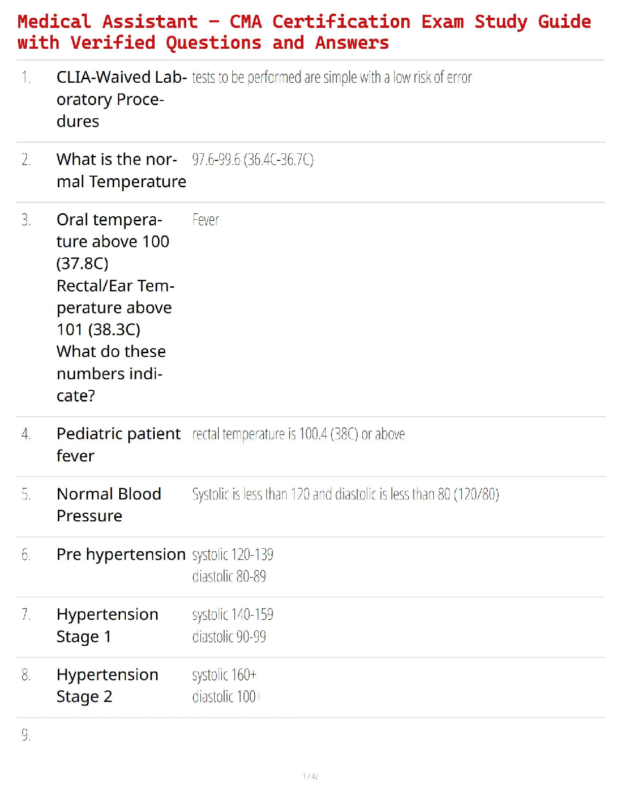 Ace your Certified Medical Assistant (CMA) exam with our latest 2025/2026 Test Bank. This comprehensive study guide is packed with verified questions and detailed answers, covering all essential topics you'll face on the test, including vital signs, blood pressure stages, laboratory procedures, and more. Designed to help you study smarter, not harder, this resource is your key to mastering the material and passing the CMA certification on your very first attempt. Download now to secure your success and avoid costly resits!