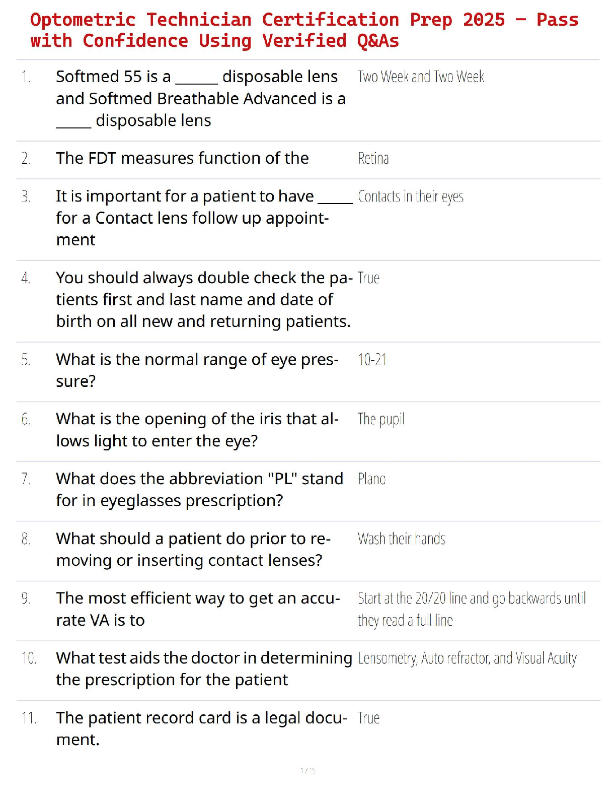 Latest 2025/2026 Optometric Technician Certification Exam Prep: Master Verified Q&As to Pass on Your First Attempt