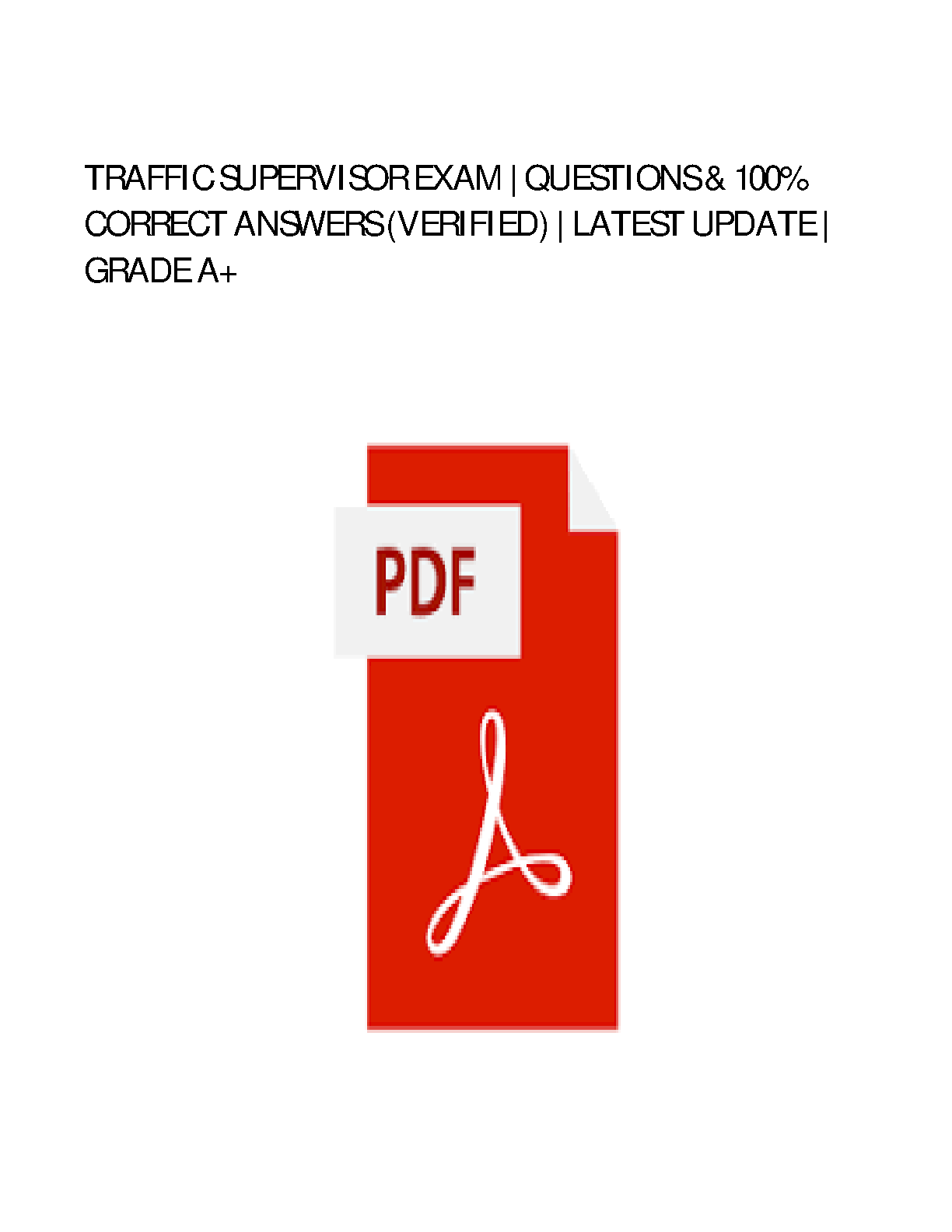 Prepare to ace your Traffic Supervisor Exam with our comprehensive and up-to-date test bank. This essential PDF guide is packed with a complete set of questions and provides 100% correct, verified answers to ensure you are fully prepared. Designed to help you achieve a Grade A+, this resource covers all the critical topics. Study with confidence and master the material with our expertly compiled study materials.