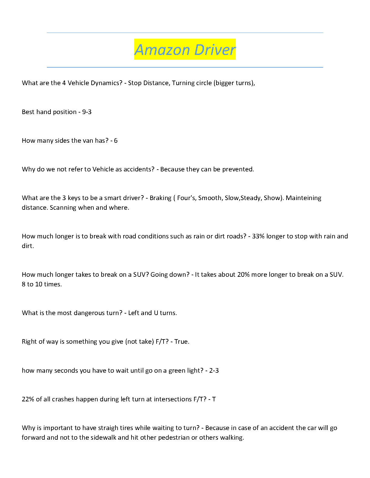 Ace your Amazon Driver assessment with our latest 2025/2026 study guide! This comprehensive test bank is packed with essential questions and detailed answers covering all key areas of the Amazon driver training program. Master topics like vehicle dynamics, safe turning, braking distances, and crucial on-road protocols. Designed to help you understand the material thoroughly and pass your test on the first attempt, this guide is your ultimate resource for becoming a successful and safe Amazon Delivery Associate. Avoid resits and start your career with confidence!