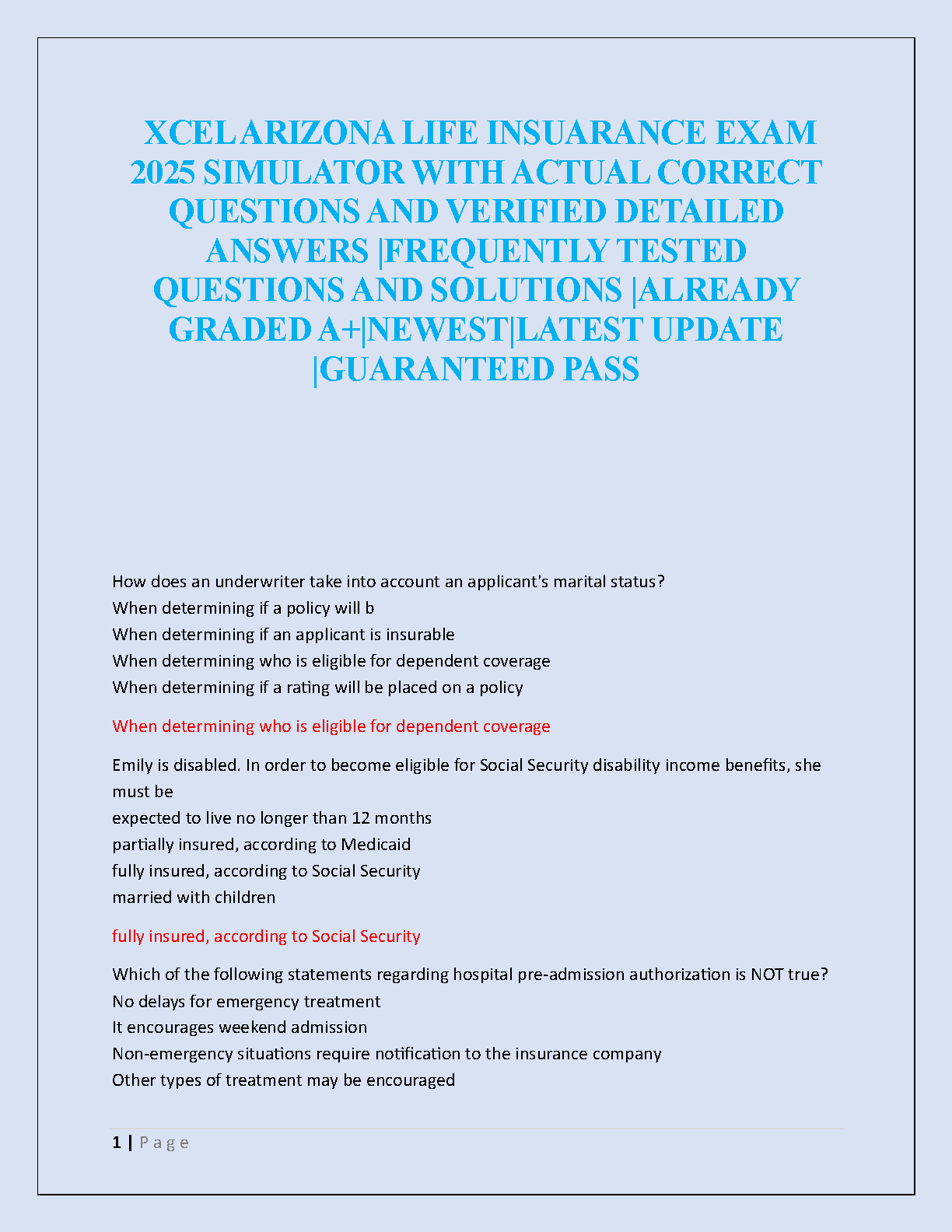 Prepare to ace your 2025 Arizona Life Insurance exam with this complete test bank from Xcel Solutions. This A+ graded study guide is packed with the latest, frequently tested questions and verified, detailed answers to ensure you pass on your first attempt. Dive into a comprehensive simulator that mirrors the actual exam, covering critical topics like underwriting principles, dependent eligibility, and policy regulations. Stop worrying about resits and start your career with confidence using this ultimate, guaranteed-pass resource.
