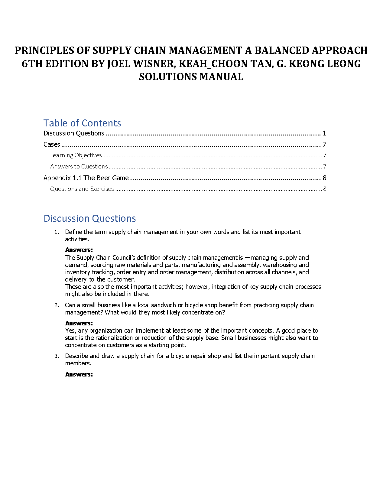 Unlock academic success with the official Test Bank for the 6th Edition of 'Principles of Supply Chain Management: A Balanced Approach' by Wisner, Tan, and Leong. This indispensable resource is packed with a comprehensive collection of exam-style questions, including multiple-choice, true/false, and short-answer problems, that cover every chapter in detail. Designed to mirror the actual exams, this test bank helps you master key concepts in purchasing, logistics, and operations, ensuring you are fully prepared to excel in your coursework and pass your exams with confidence on the first try.