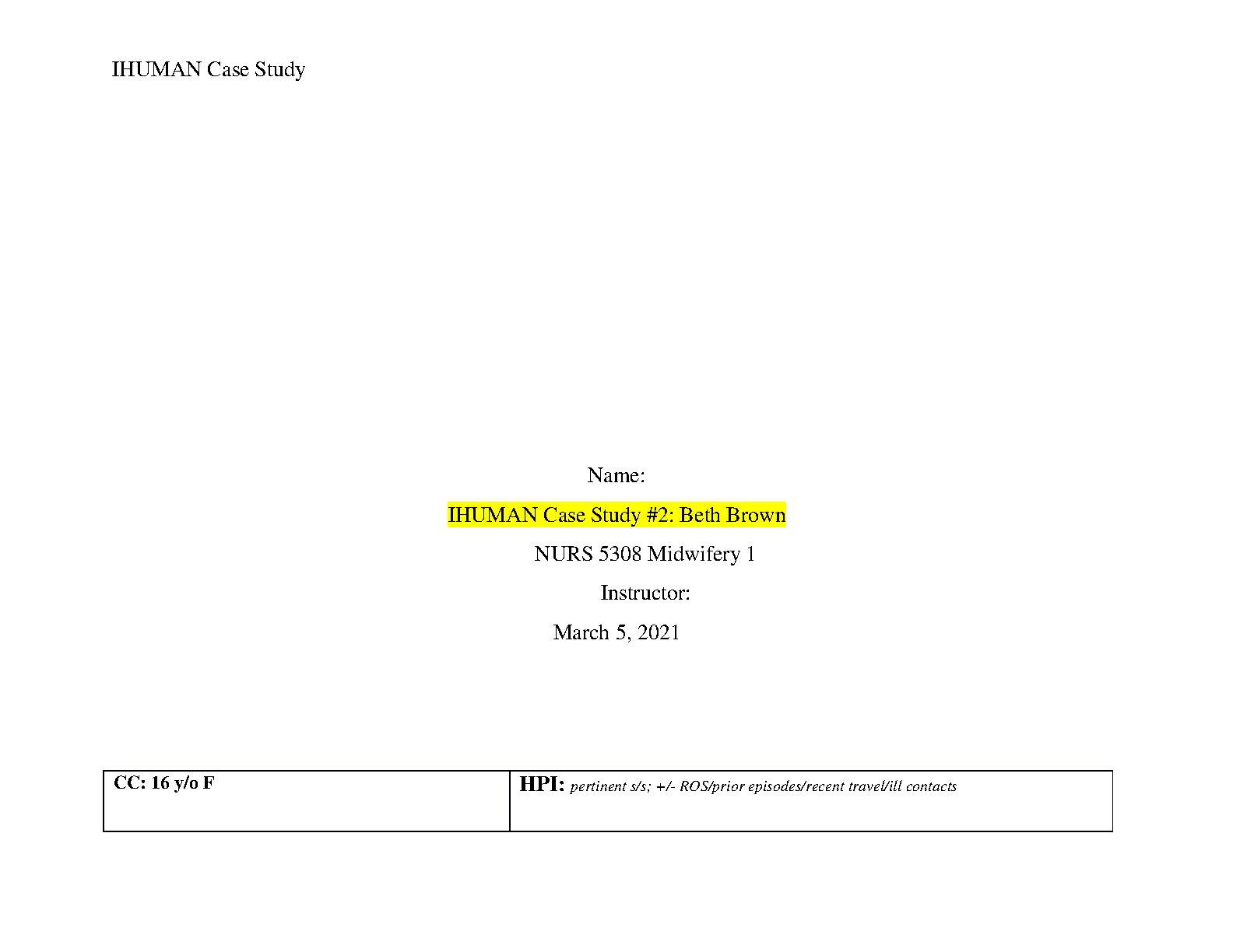 NURS 5308 IHuman Case Study #2: Beth Brown - Midwifery 1 | 2025/2026 Updated Guide to Pass First Try