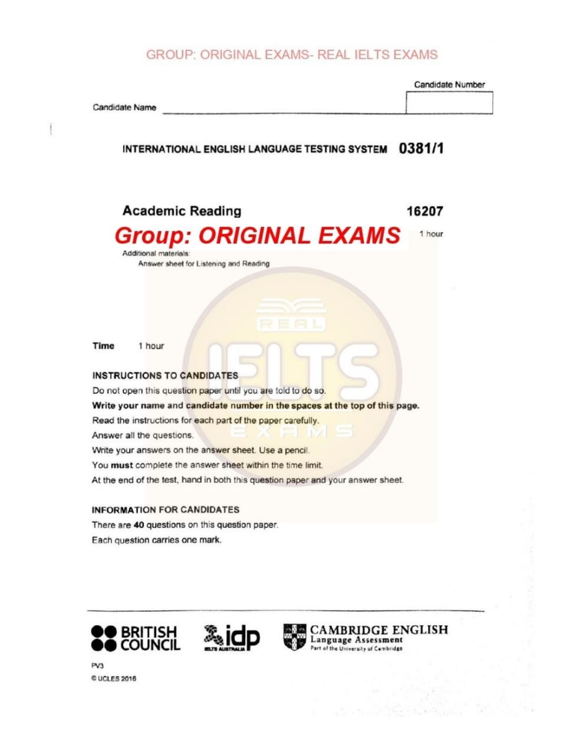 Ace your IELTS Academic Reading test on the first attempt with this exclusive resource from 'Original Exams'. This complete, authentic practice test, developed by the official creators of the IELTS exam—Cambridge, British Council, and IDP—provides a real exam experience. The file contains a full 1-hour Academic Reading paper with 40 questions, designed to precisely replicate the format and difficulty of the actual test. By using these genuine exam materials, you can sharpen your reading skills, perfect your time management, and build the confidence needed to achieve your target band score. Stop guessing and start practicing with real questions to guarantee your success.