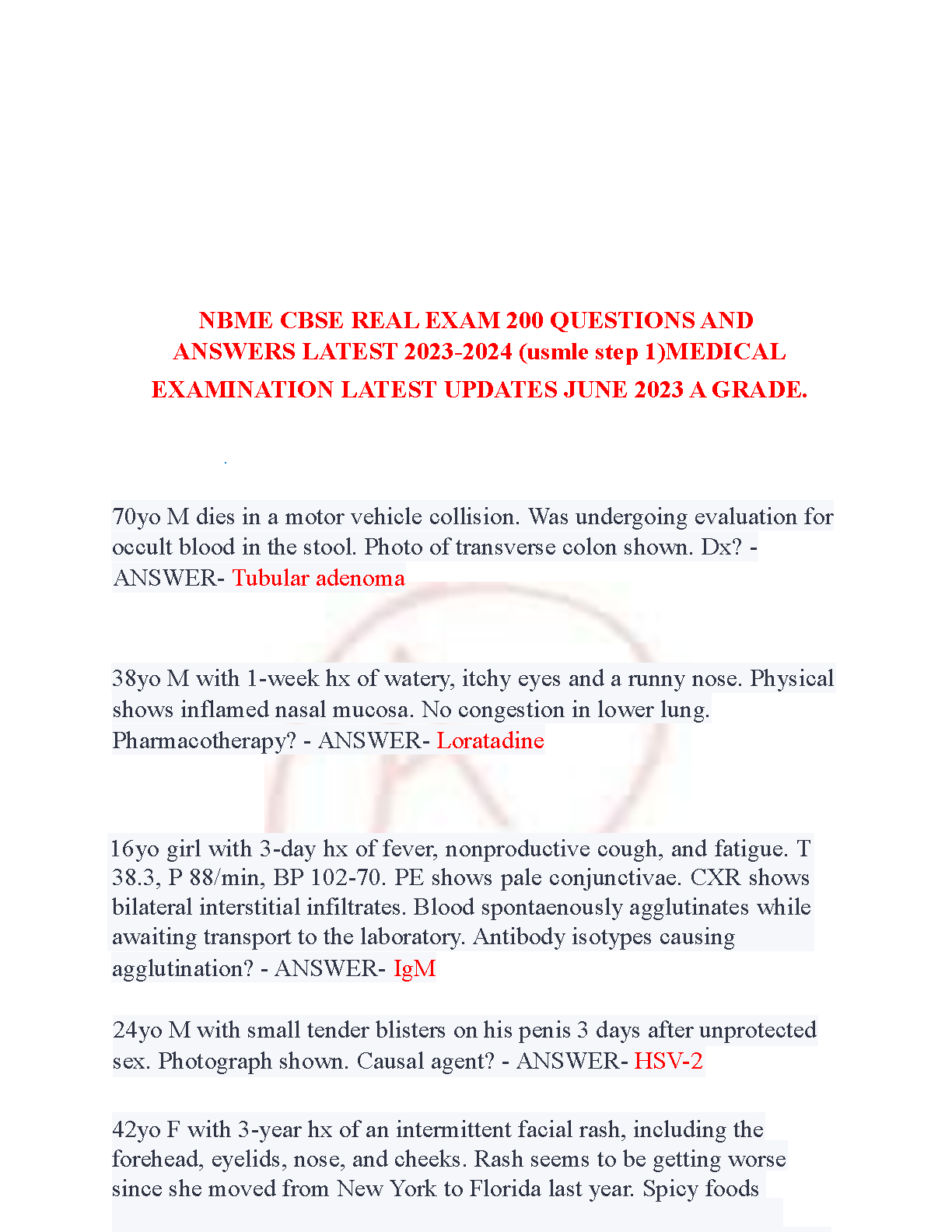 Struggling with your NBME CBSE or USMLE Step 1 prep? Secure your success and avoid resits with our latest 2025/2026 exam resource. This comprehensive test bank features 200 real exam questions meticulously collected from recent NBME CBSE medical examinations. Each question is paired with a clear, verified answer, providing you with the most accurate and up-to-date study material available. Designed to mirror the actual exam format, this guide helps you master complex clinical vignettes and achieve an A-grade performance on your first try. Download now for instant access to the ultimate study tool for your medical board exams.