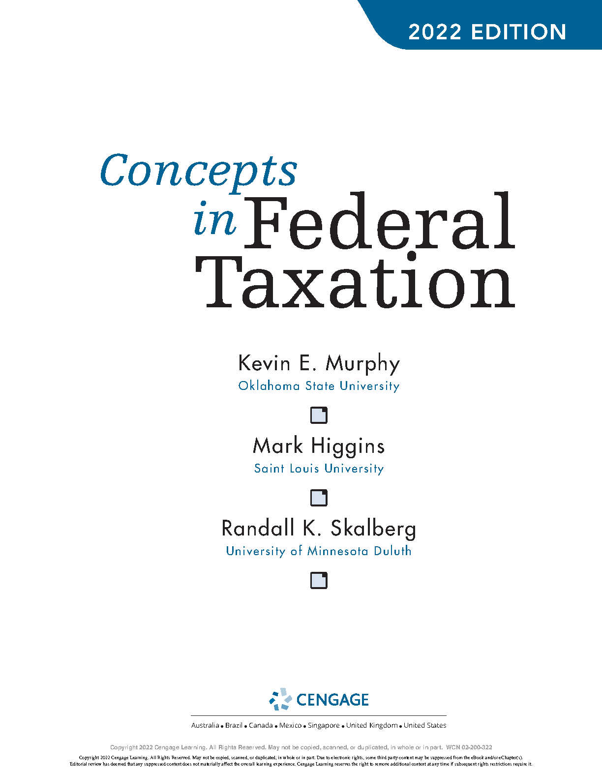 Test Bank for Concepts in Federal Taxation, 2022 Edition by Kevin E. Murphy, Mark Higgins, C.J. Skalberg